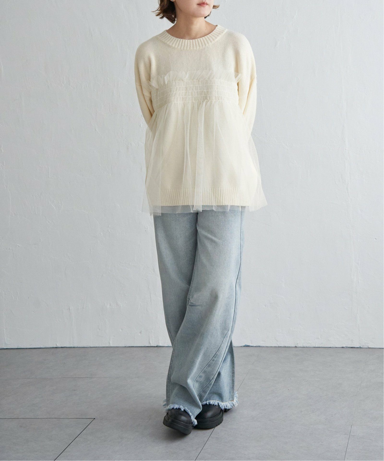 SALE listIcon2 detailIcon1 春割最大3000off 他の画像を見る いつものニットにフリルをドッキング! チュールフリルドッキングニット ¥ 6,589 → ¥ 3,894 税込 カートに入れる お気に入りに登録する