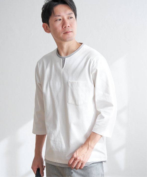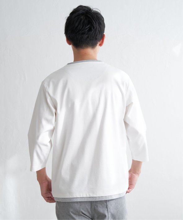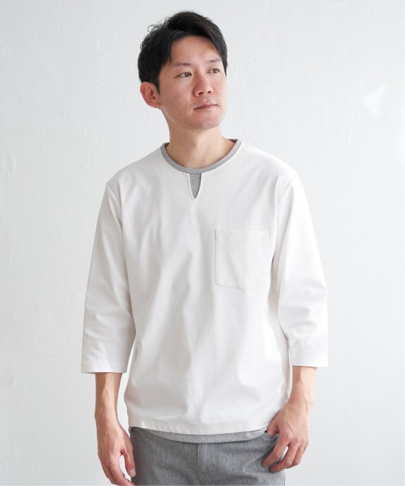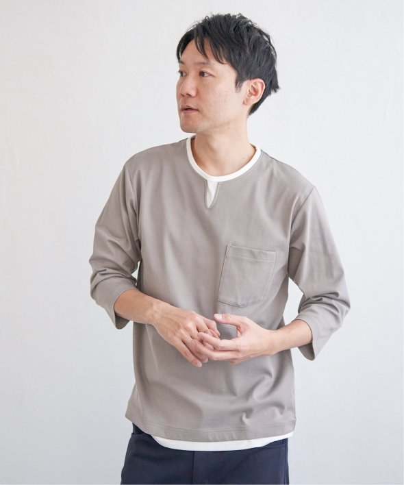 重ね着しているようなフェイクレイヤード仕様で、機能性とデザインを両立した7分袖キーネックTシャツ。