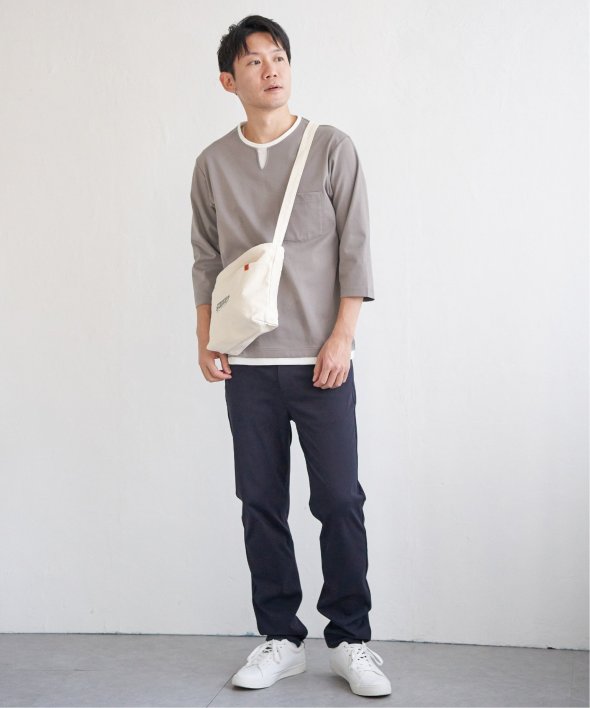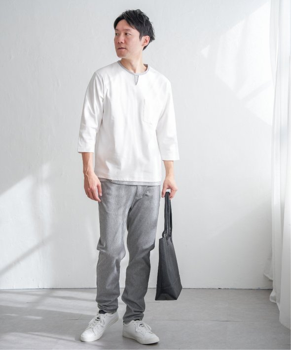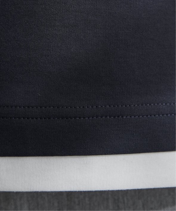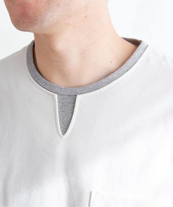 Tシャツの上にキーネックを重ねたような、フェイクレイヤードになったデザインです。