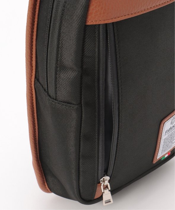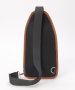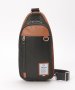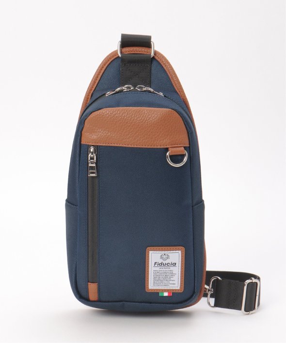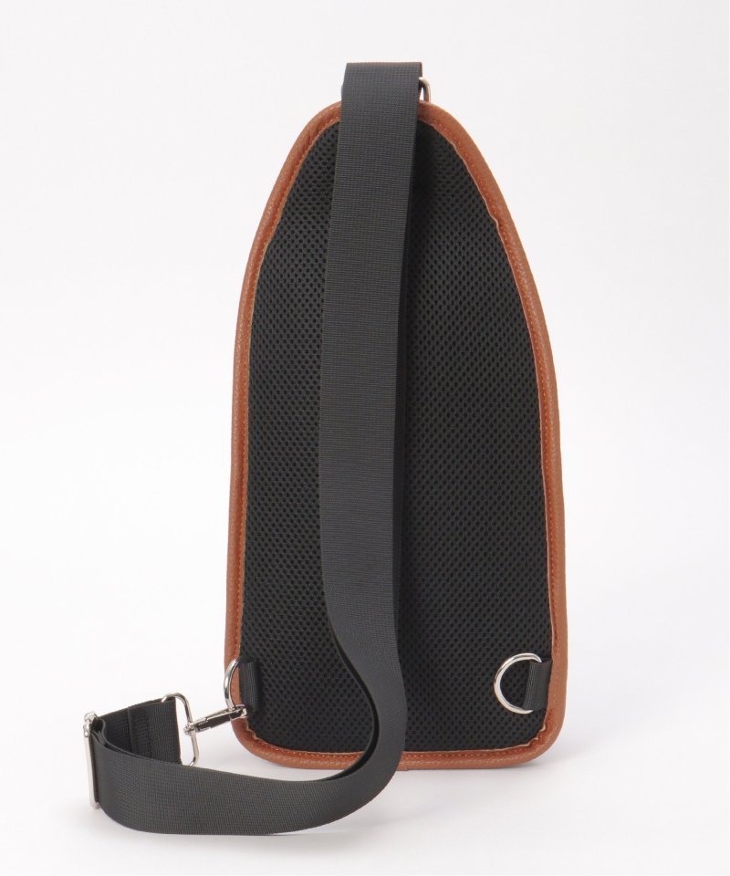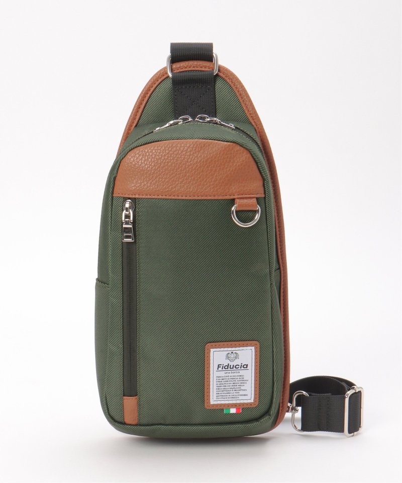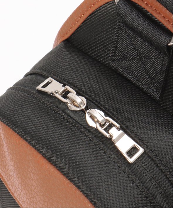 ポリエステルとレザータッチ素材を組み合わせた配色切り替えのボディバッグ。