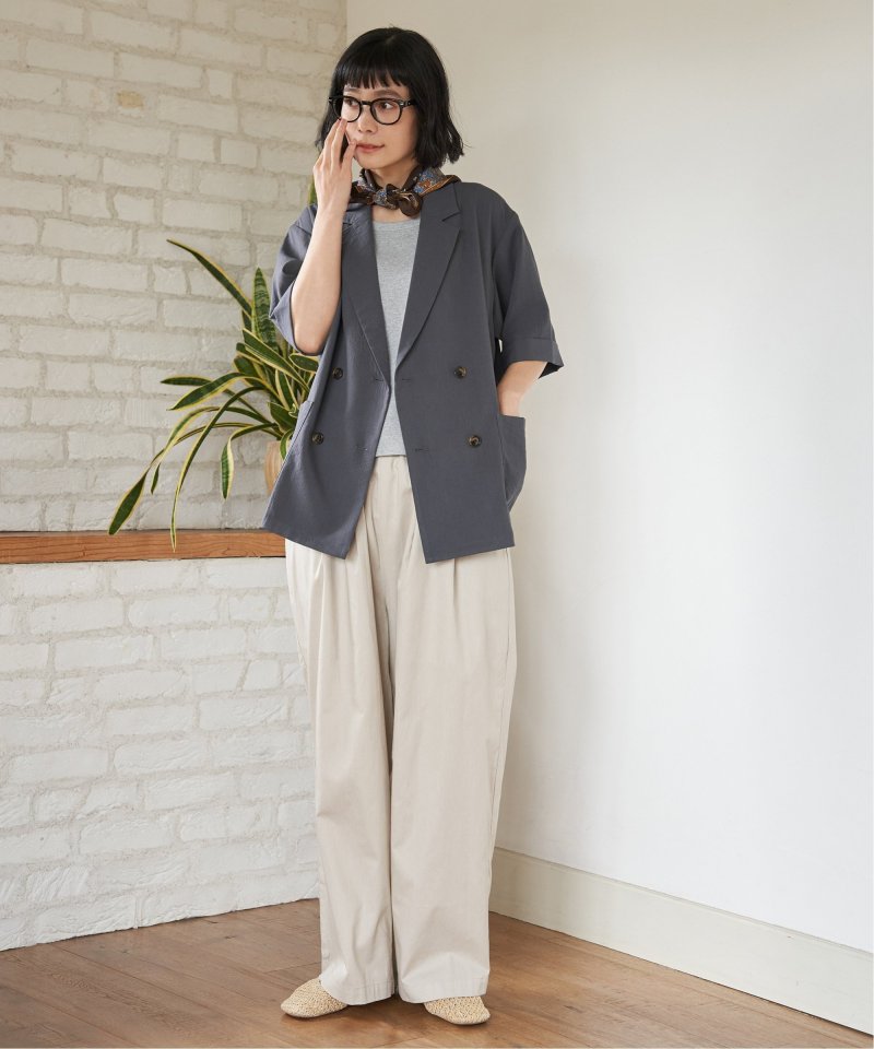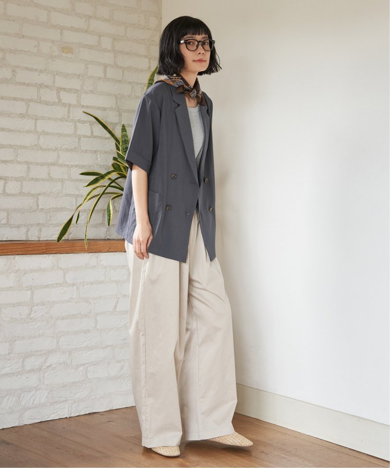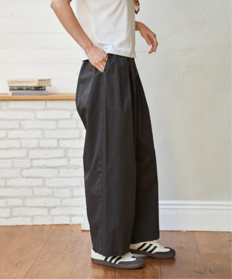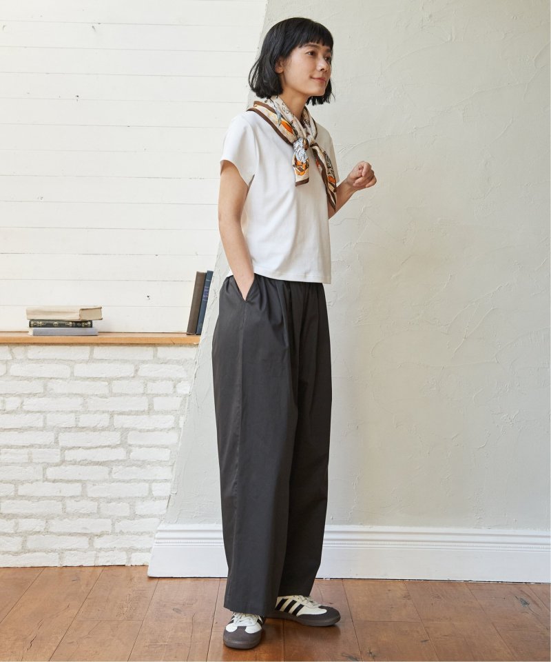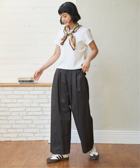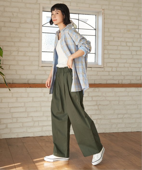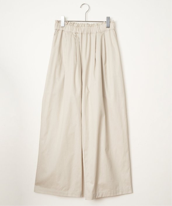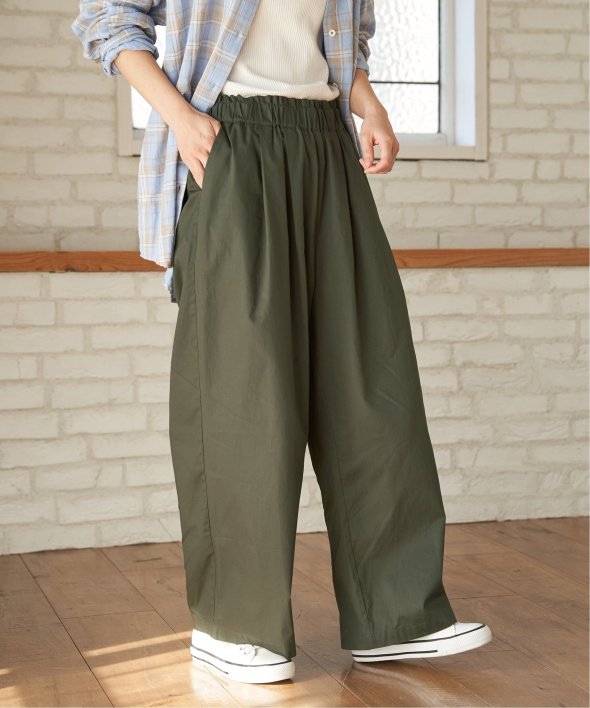 綾織のコットン100%素材を使用したギャザーワイドパンツ。ウエストはイージー仕様で、ゆったりとした履き心地が魅力です。シンプルなデザインで、デイリーコーデに取り入れやすい一本。【素材】目面のきれいな綾織コットン100% 。【デザイン】ワイドイージーパンツです。【ポイント】ウエストにほどよくギャザーを入れ、気になるウエストまわりをスタイリッシュにカバー。今年は綿に素材を変えて、気温に合わせて快適に使えるようにしました。