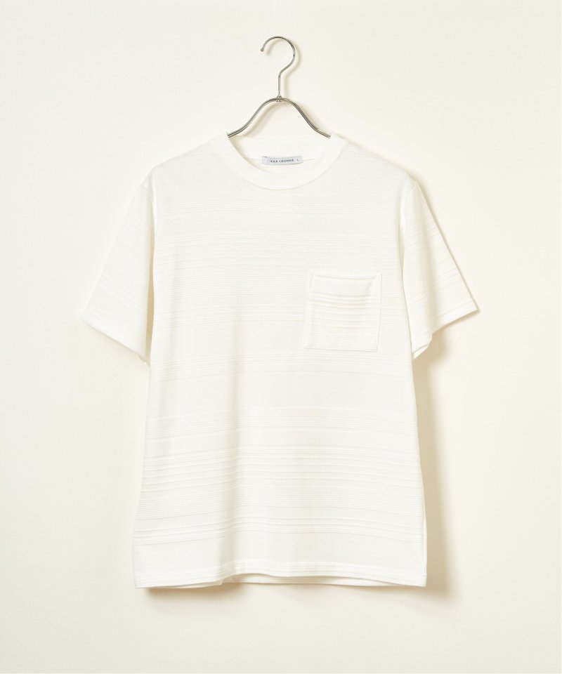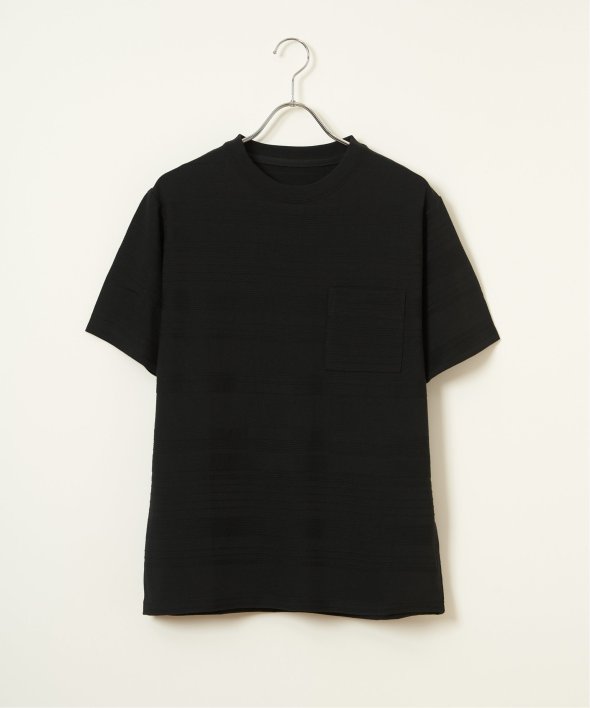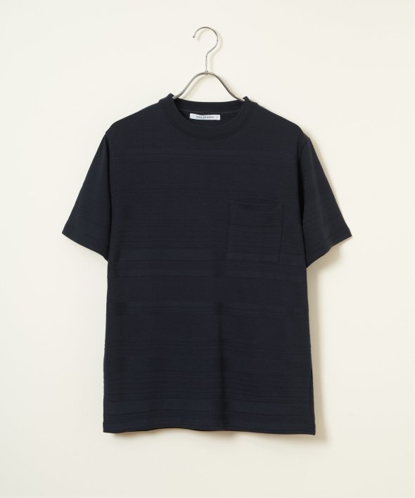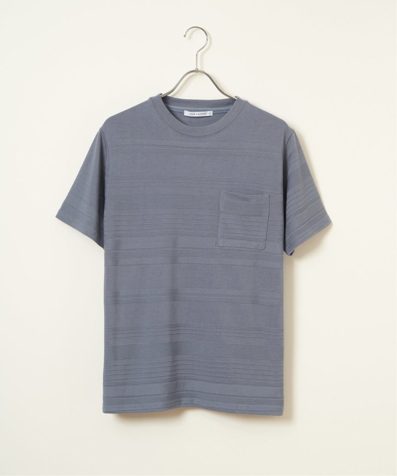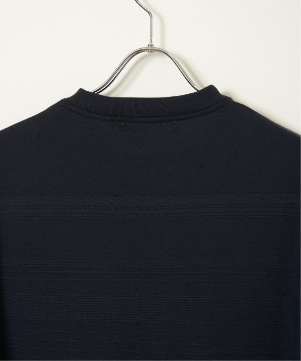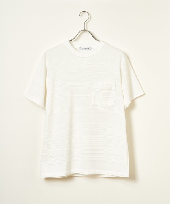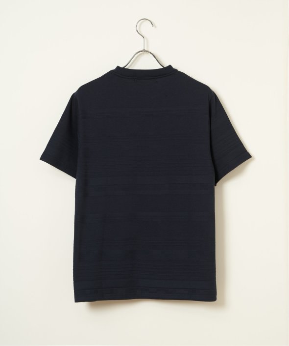 シンプルな半袖のクルーネックTシャツですが、生地の表面に凹凸のある地柄のランダムボーダーが特徴。