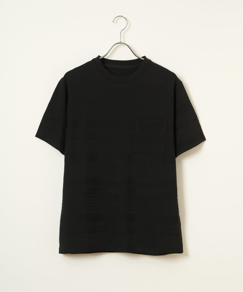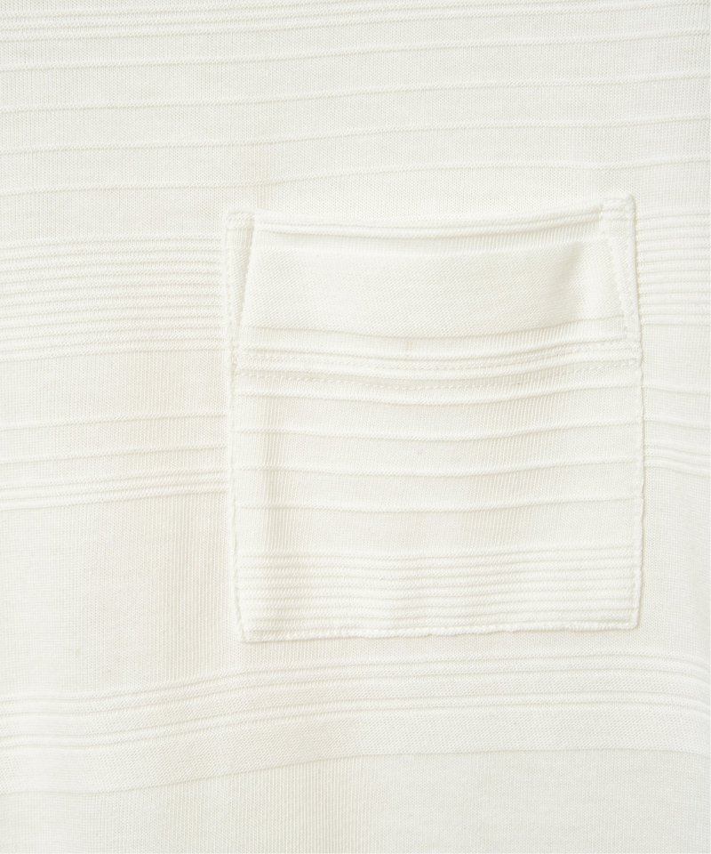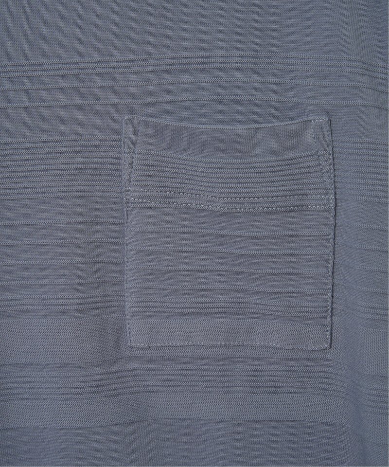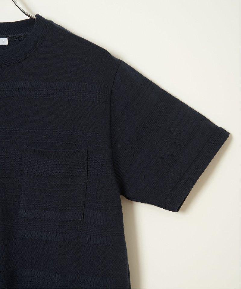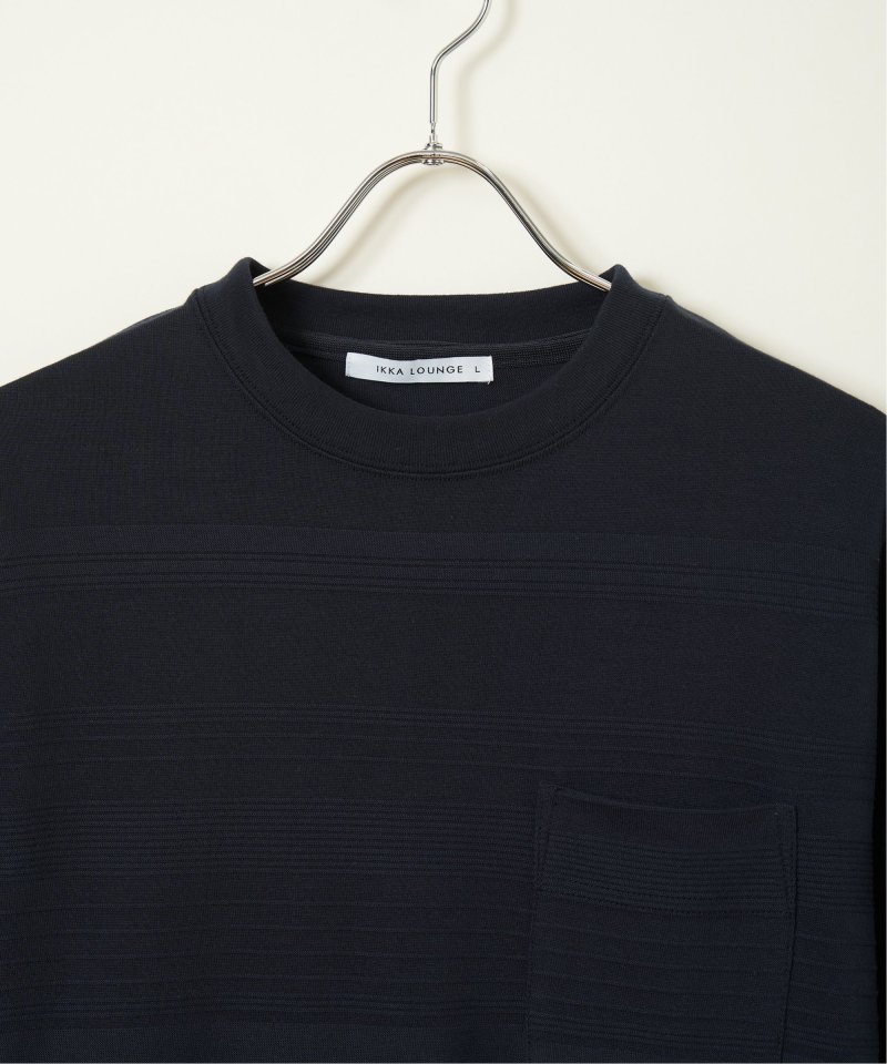 シンプルな半袖のクルーネックTシャツですが、生地の表面に凹凸のある地柄のランダムボーダーが特徴。