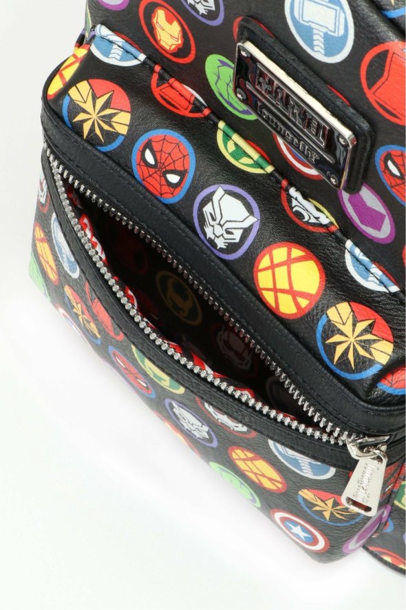 [アイテム説明]アベンジャーズのキャラクターアイコンをデザインしたミニリュック。ストラップは長さの調整が可能で、収納に便利なフロントポケットとサイドポケット付き。リュックの内側にもマーベルのロゴがデザインされています。Loungefly/ラウンジフライ日本限定モデル !