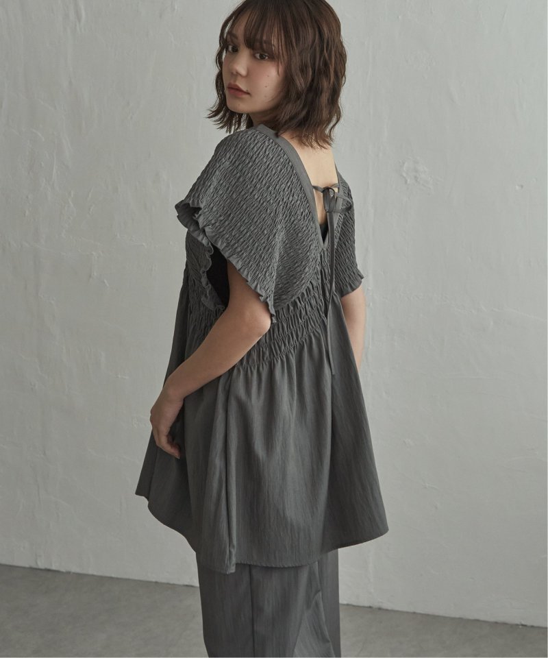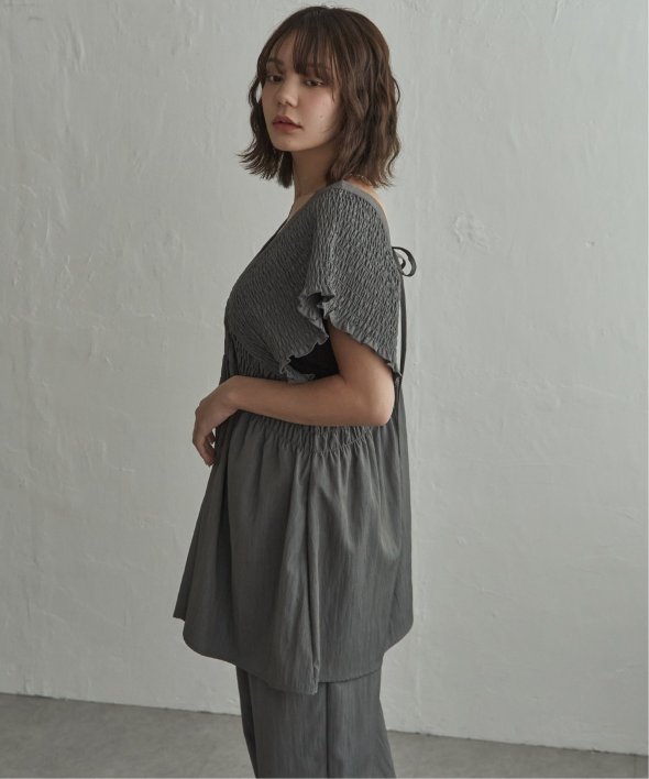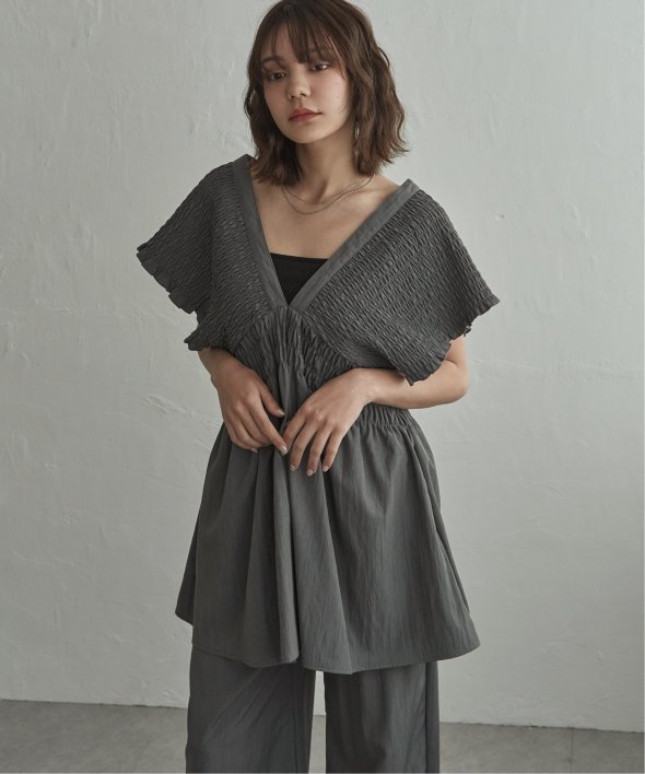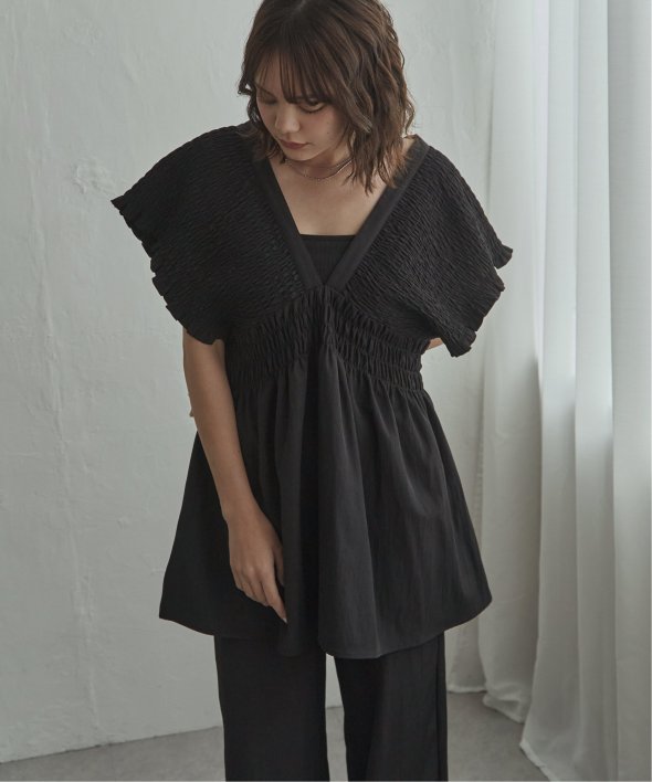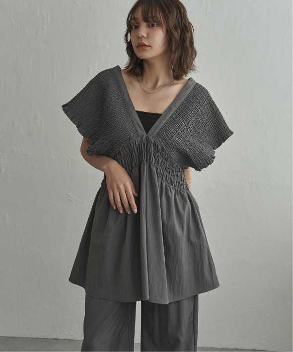 たっぷりと施したシャーリングが印象的なチュニック。