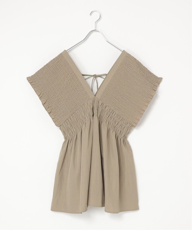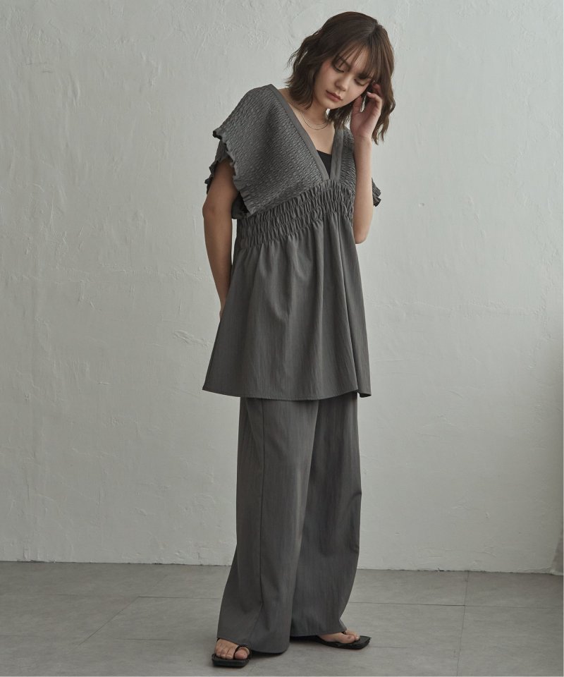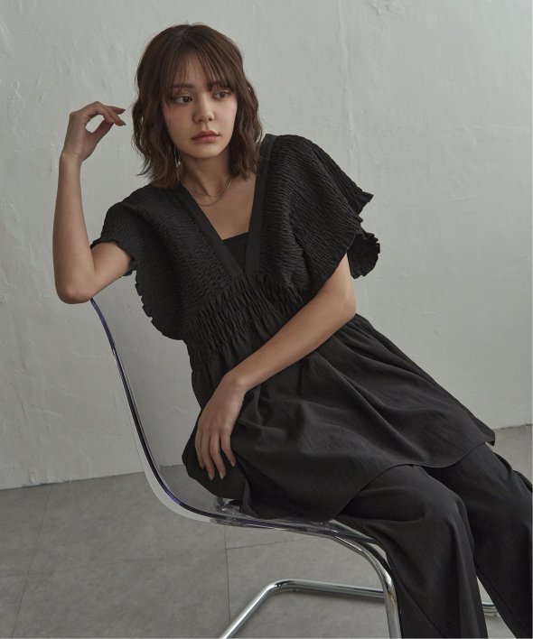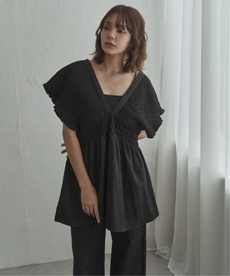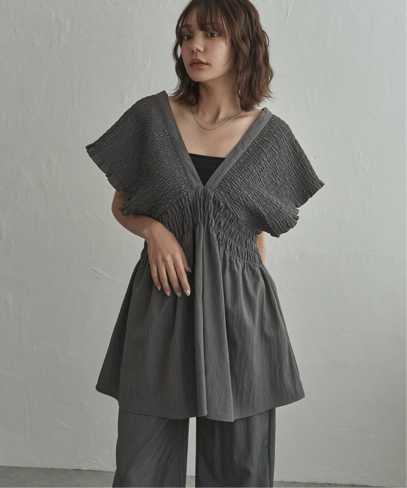 深Vネックとシャーリングでつくる立体シルエット 【セットアップ対応】TNシャーリングチュニック