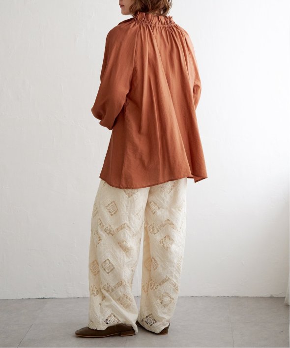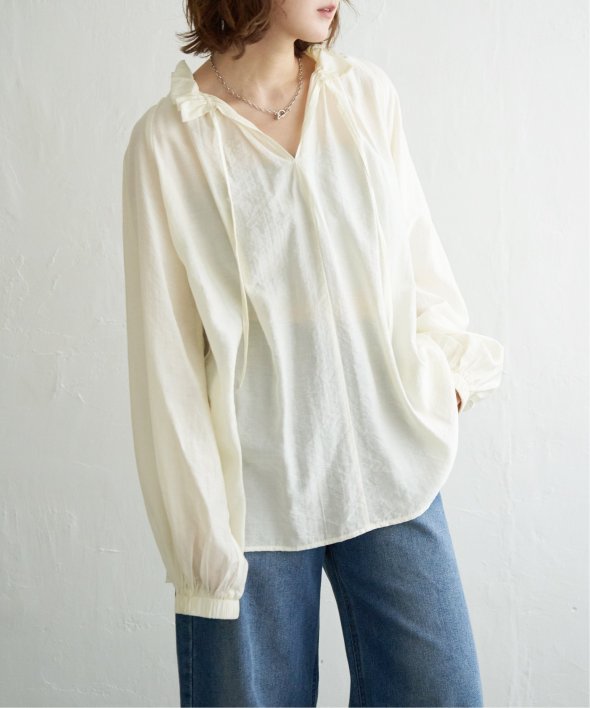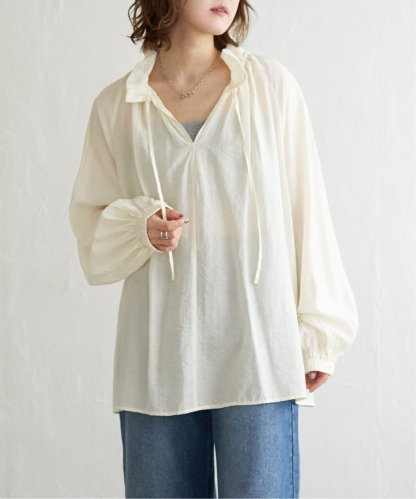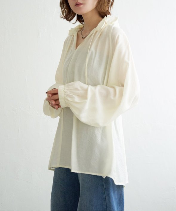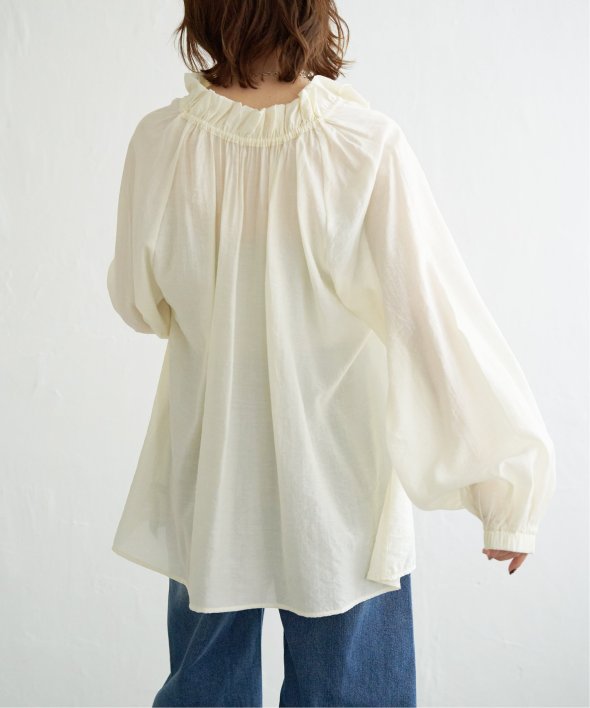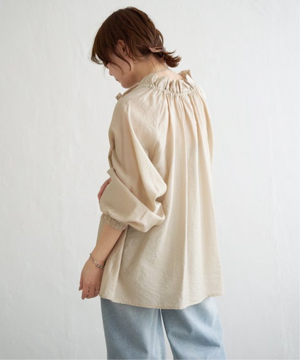 ギャザーたっぷりのボリュームシルエットが、ふんわりと優雅な印象を演出するフリルギャザーブラウス。