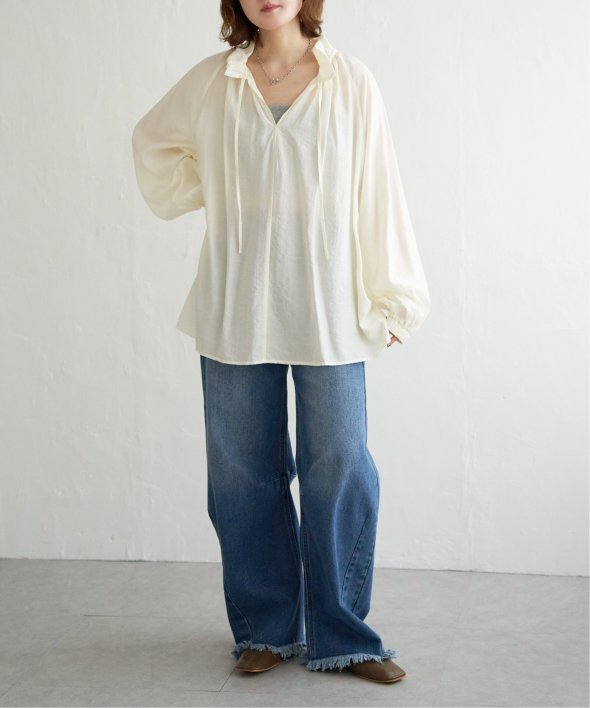 ふんわり軽やかな素材感で、シーズンを問わず着回しやすい一枚です。