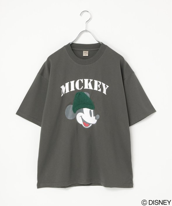 ニット帽姿のミッキーデザインが映えるTシャツ Mickey Mouse ミッキーマウス ユーズドライクニット帽ミッキーデザインTシャツ