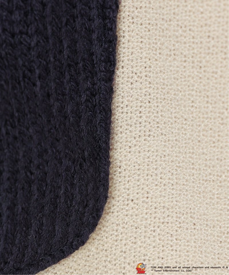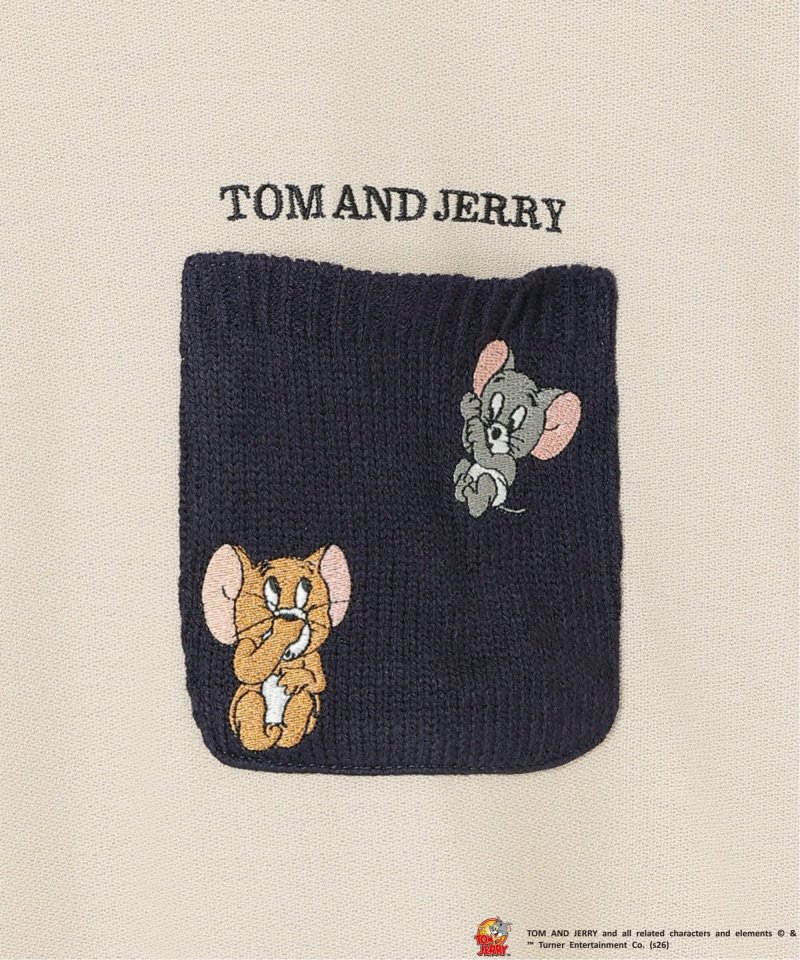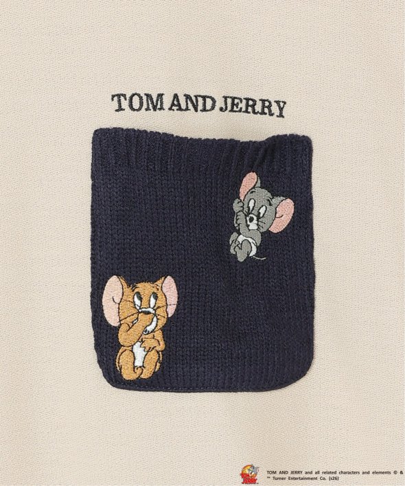 ジェリーとタフィーの刺繍を施した配色ニットポケットを胸元に配置。