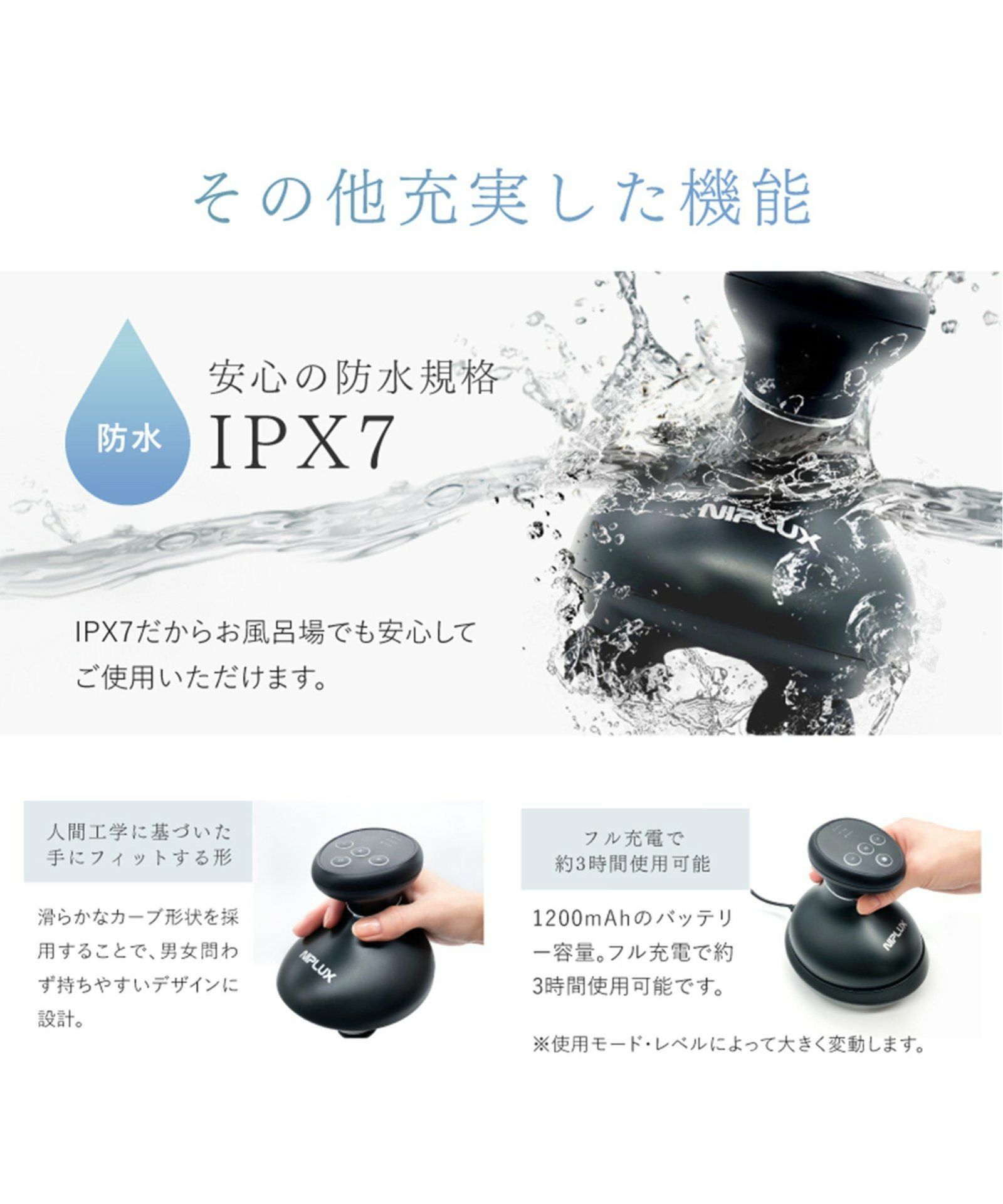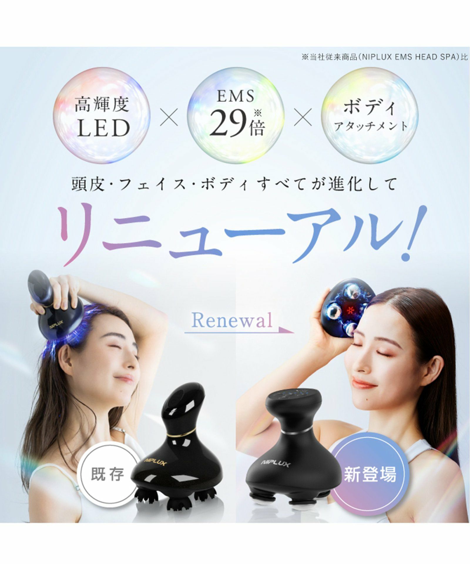 TDCBS 他の画像を見る EMS搭載!全身にも使えるプレミアムなヘッドスパ NIPLUX EMS HEAD SPA PREMIUM ニップラックス EMSヘッドスパプレミアム ¥ 19,800 税込 カートに入れる お気に入りに登録する
