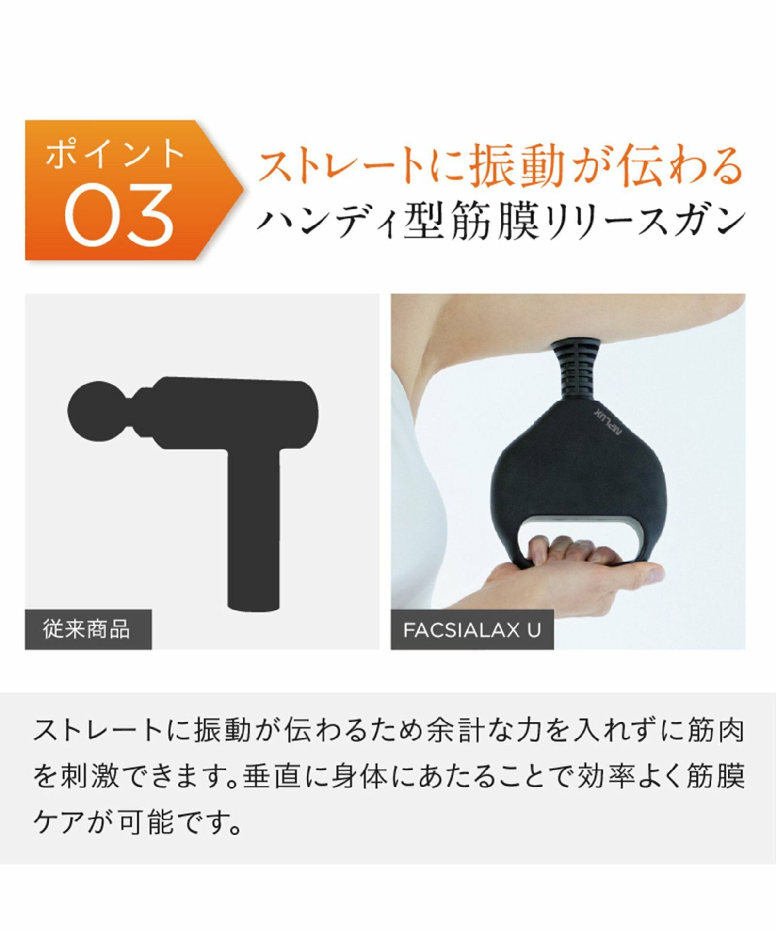 TDCBS 他の画像を見る バンド型リリースガンで背中ケアを実現! NIPLUX FASCIALAX U ニップラックス ファシアラックス U ¥ 18,700 税込 カートに入れる お気に入りに登録する