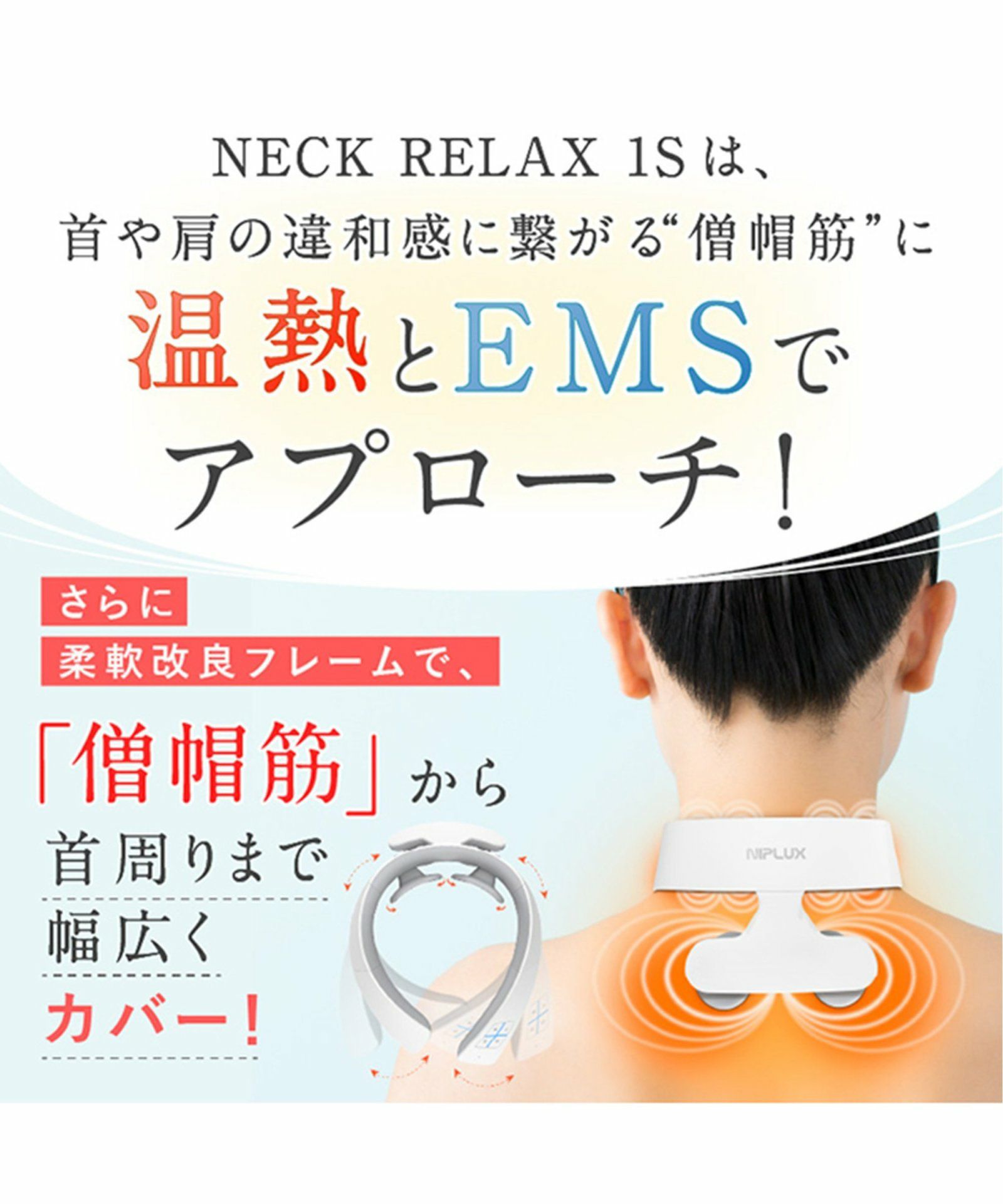 TDCBS 他の画像を見る 6枚の電極パッドが首・肩・背中へアプローチ! NIPLUX NECK RELAX 1S ニップラックス ネックリラックス ワンエス ¥ 13,860 税込 カートに入れる お気に入りに登録する