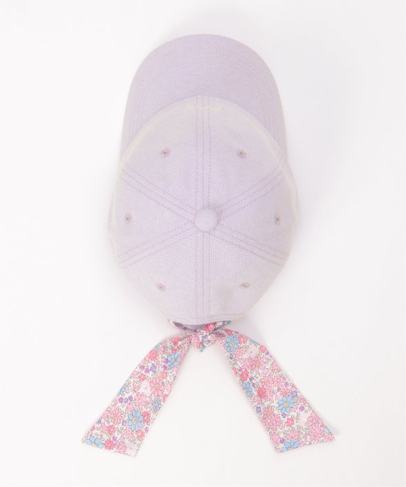 後ろ姿までかわいく仕上がる、花柄リボンキャップ