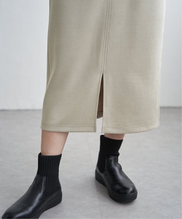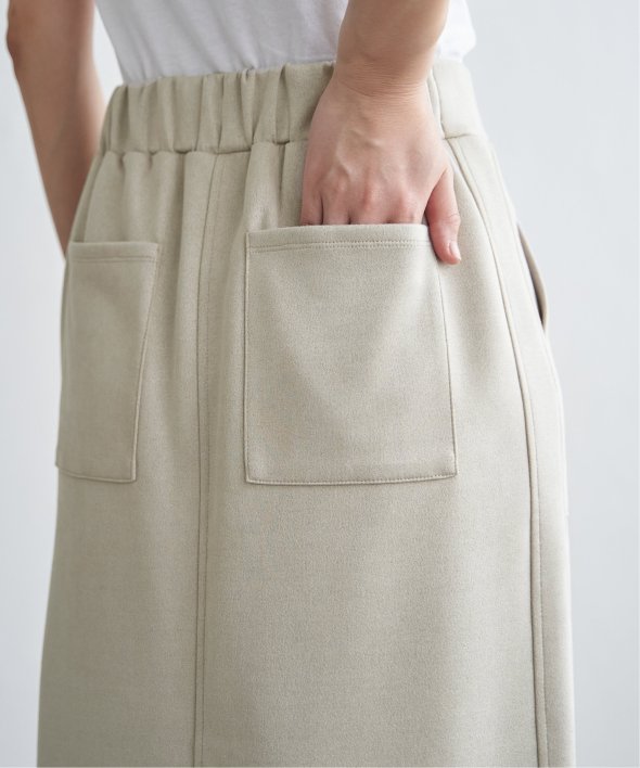 快適な履き心地ときれい見えを兼ね備えた、フェイクスエードがポイントのスカート。大きめのポケットでほんのりカジュアルダウン。【素材】「GOKU楽カットソー」スウェード風の微起毛が施されたストレッチ性のあるカットソー。【デザイン】腰回りのアウトポケットがきれいめカジュアルなタイトスカート。【ikkaポイント】・体のラインを拾わない肉感のしっかり素材・アウトポケットが腰回りをカムフラージュ、体形カバーに・さまざまな身長の方にバランス良く着用いただける丈感【おすすめコーディネート】キッズサイズも展開しているため、親子おそろいでコーディネート可能です。・フェイクスエードベイカーロングスカート(120~160cm) 品番 13260399親子お揃い、親子おそろい、親子リンク