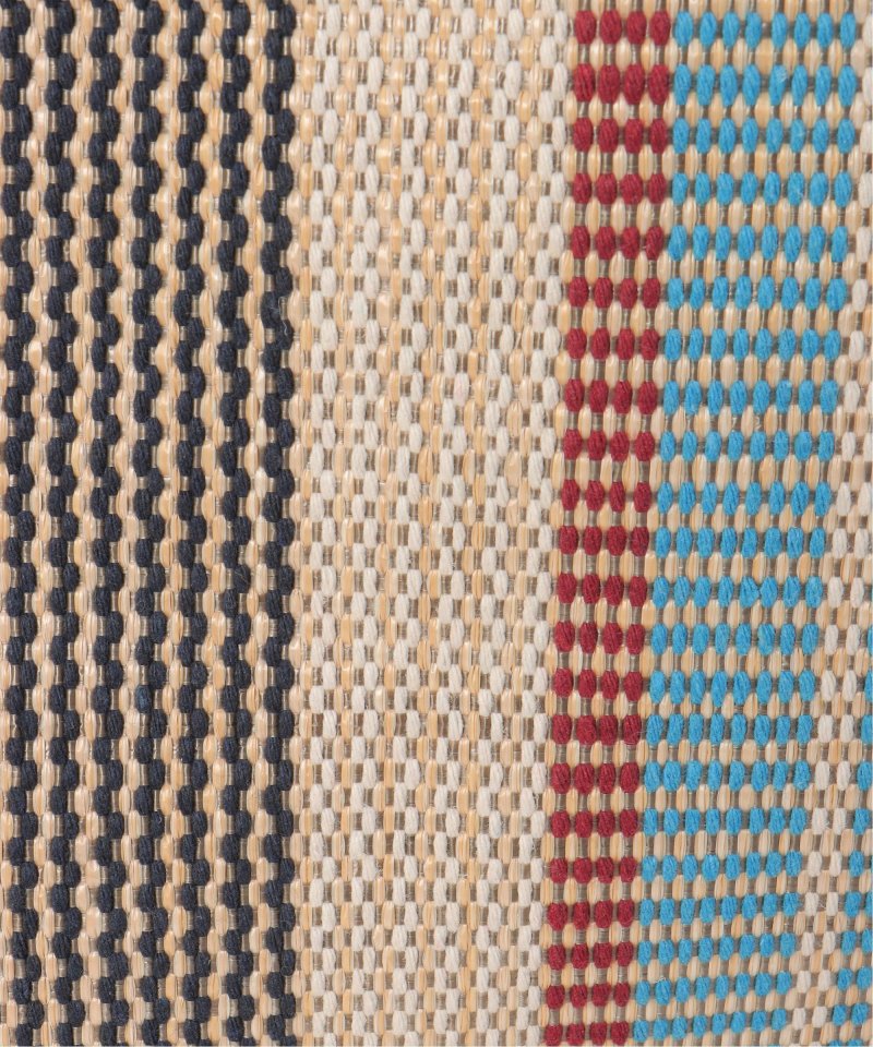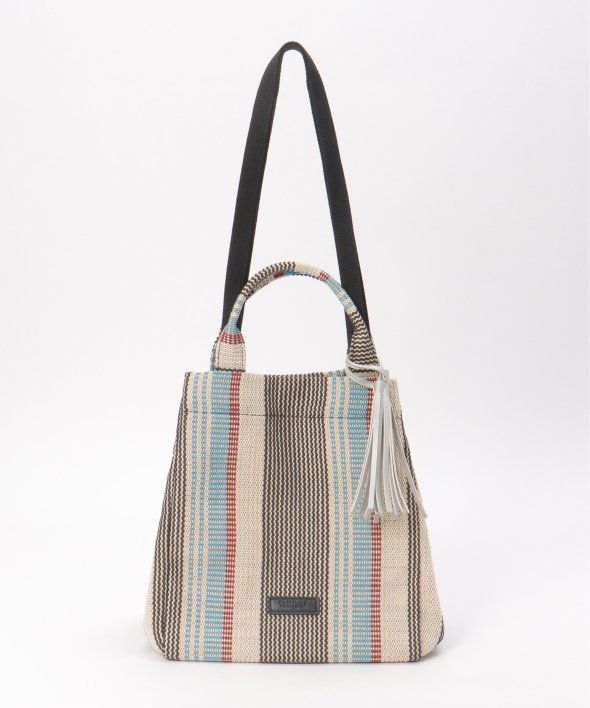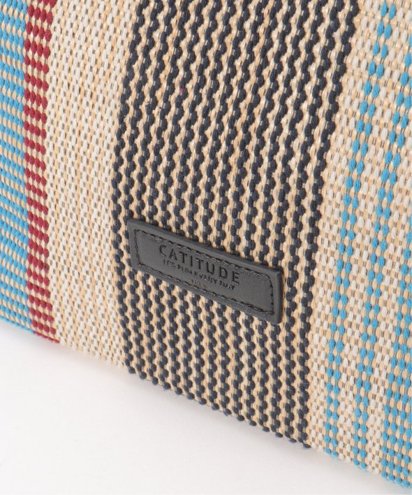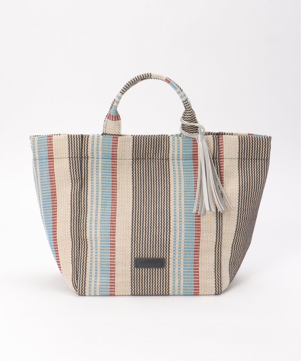 マルチカラーストライプが目を引く、夏らしい表情の雑材シートトートバッグ。