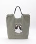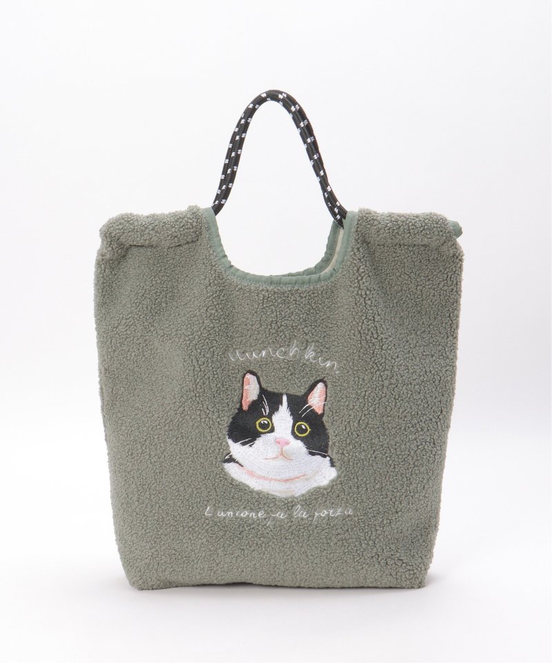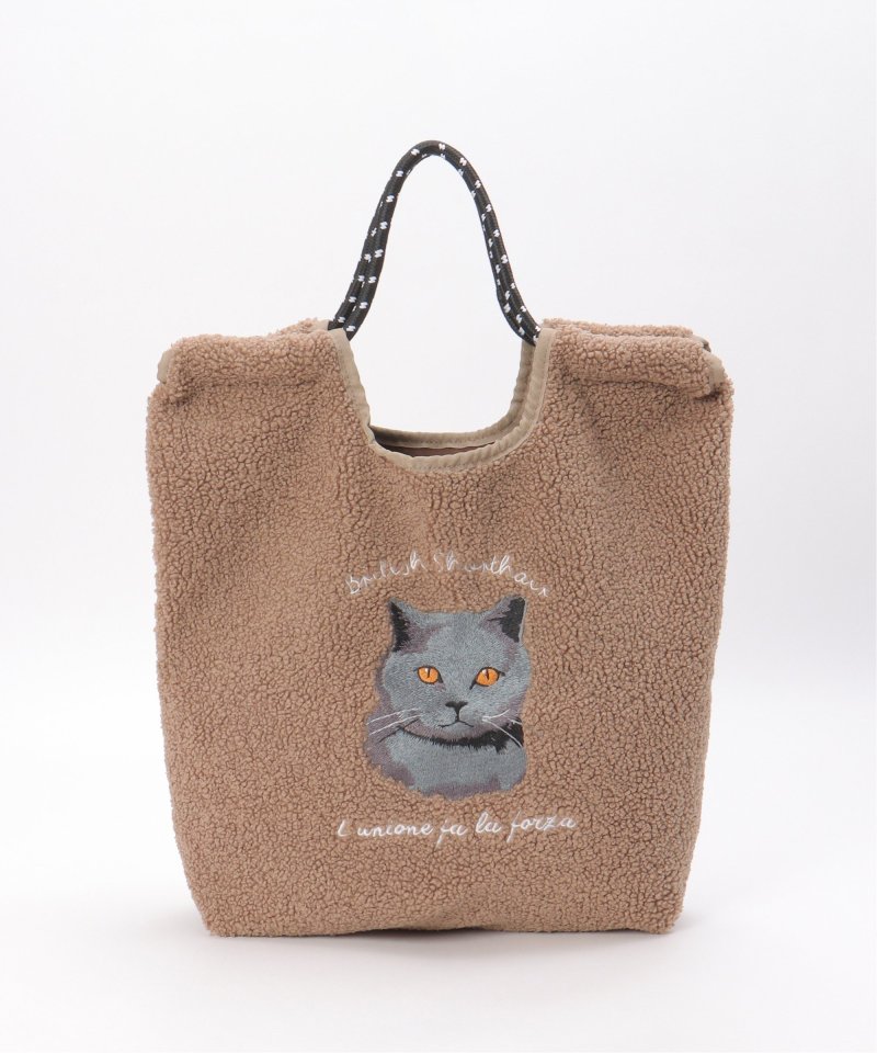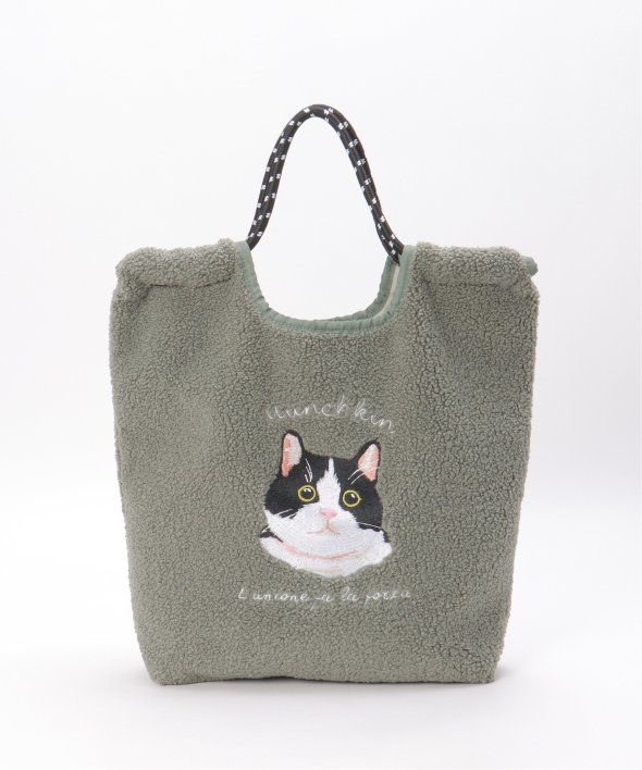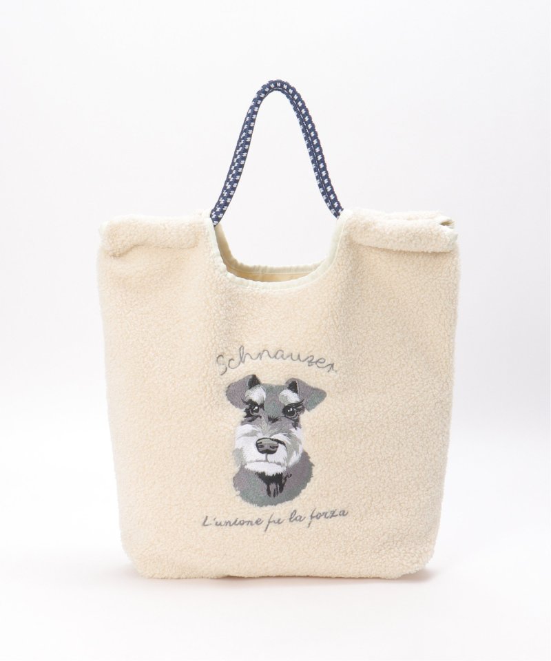 ふわふわのボア素材に、愛らしい猫&犬の刺繍をあしらったトートバッグ。リアルタッチの刺繍が印象的。持ち手にはアウトドア風のロープコードを採用し、カジュアルにもフェミニンにも合わせやすいデザインです。【デザイン】コード使いのトートバッグ。【ポイント】・A4サイズの書類、ペットボトル収納可能サイズ・太めのコード持ち手で肩あたり軽減