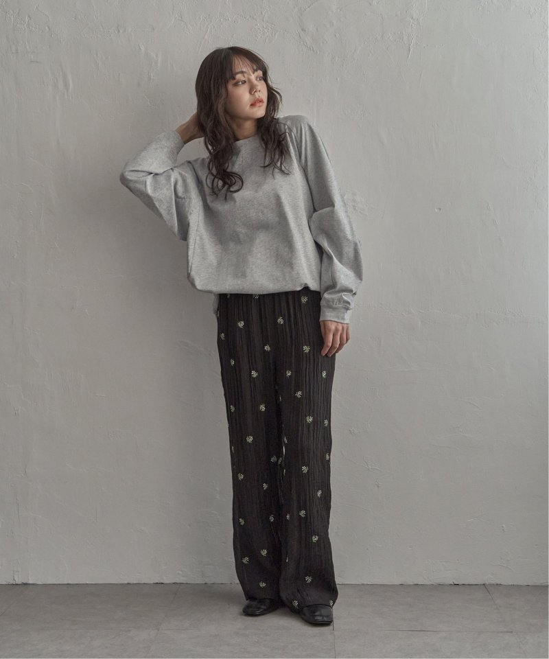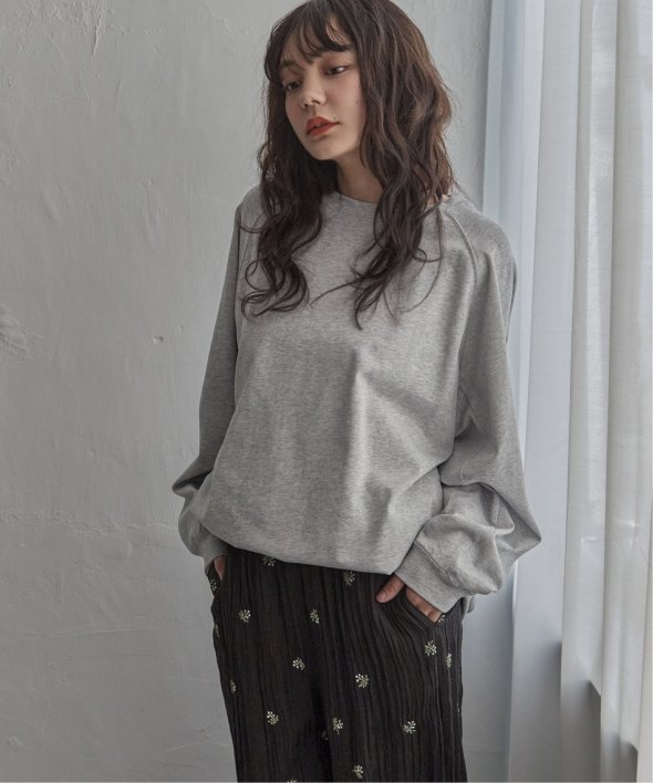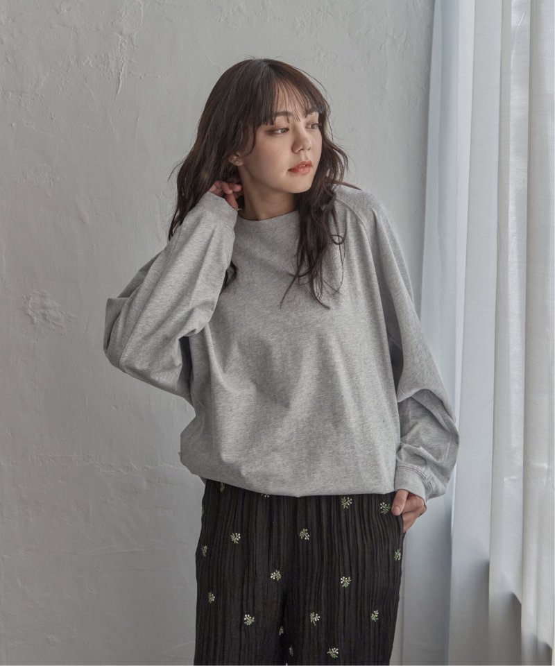 無地デザインにゆったりとした身幅、ラグランスリーブがこなれた印象を演出します。