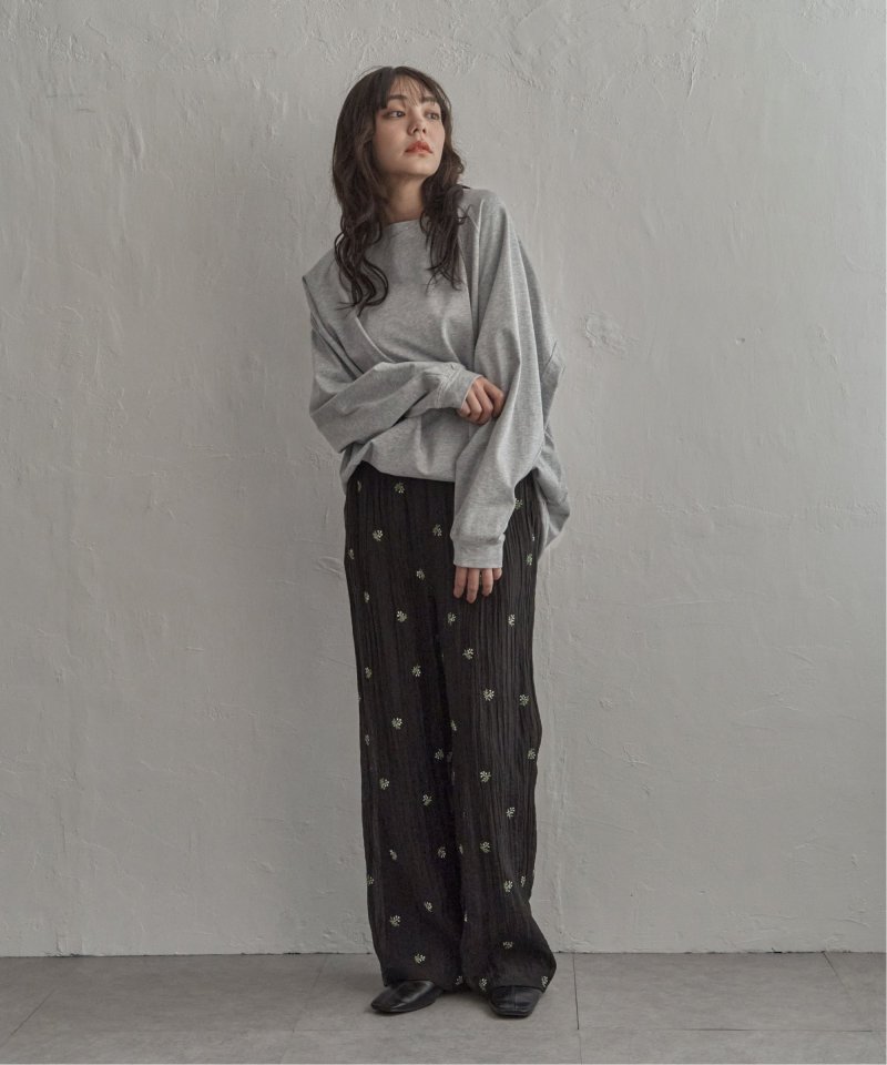 ゆったりとした身幅と長めの着丈で、リラックス感たっぷりのシルエット。