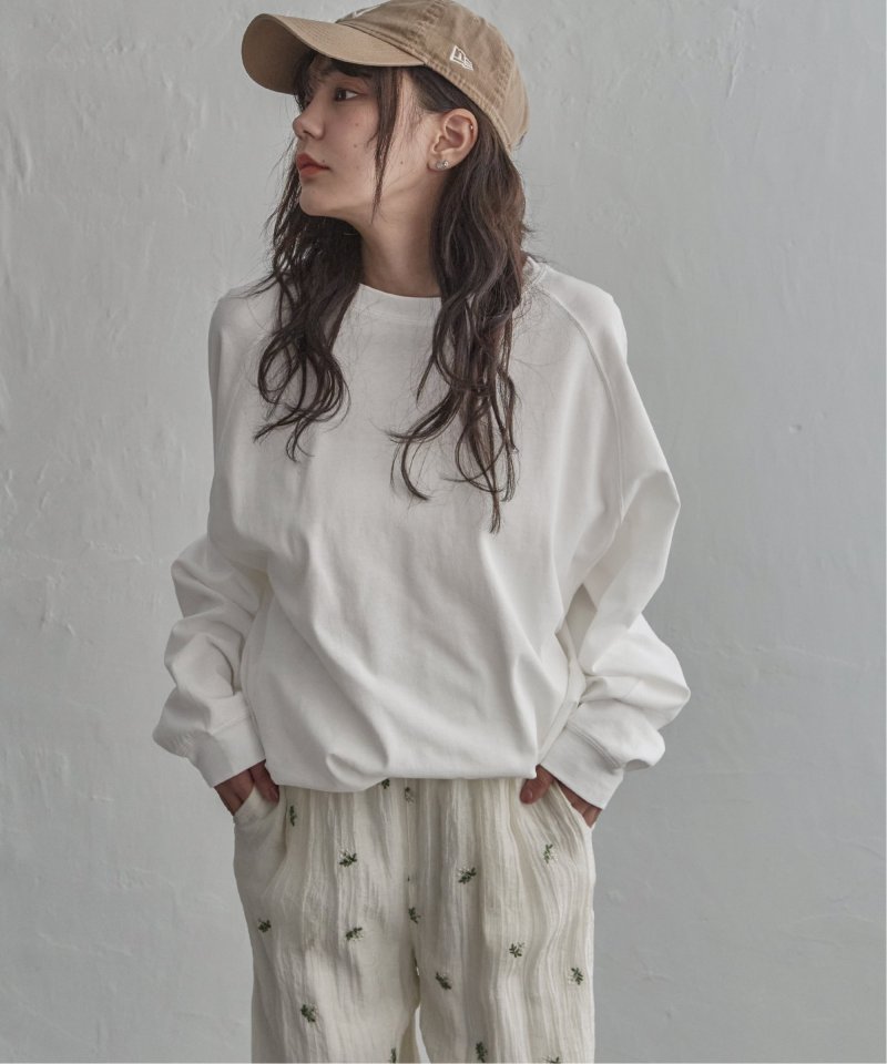 肩のラインを自然に見せるラグランスリーブ仕様。
