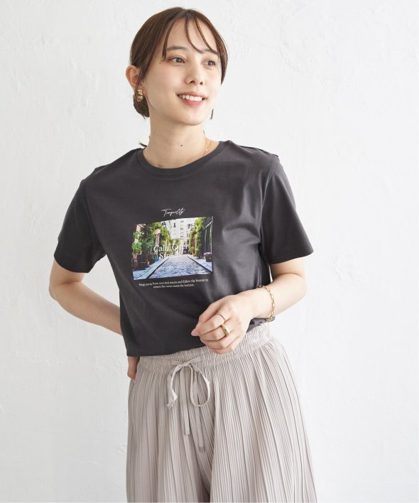 きれいめな印象で着られるコットン100%の素材を使用したロゴフォトプリントTシャツ。