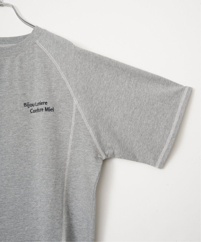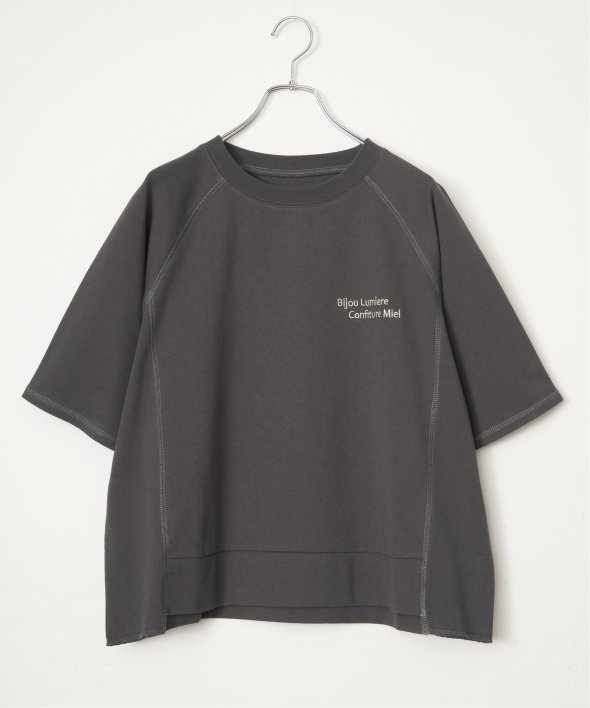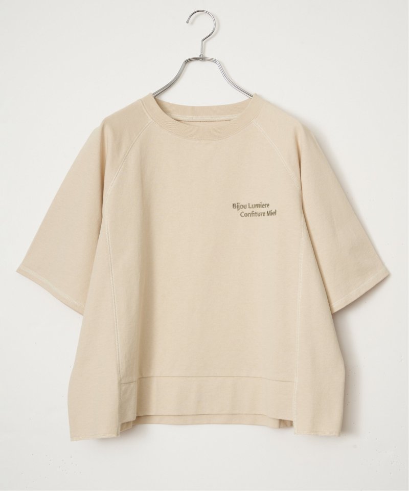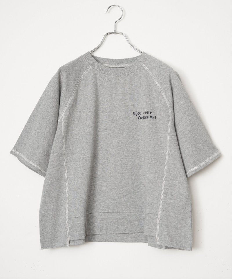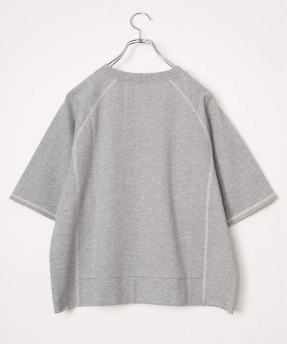 配色ステッチが映える5分袖プルオーバー 【先行予約】ミニ裏毛切り替え刺繍5分袖プルオーバー