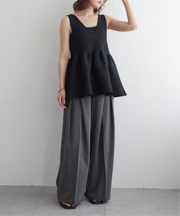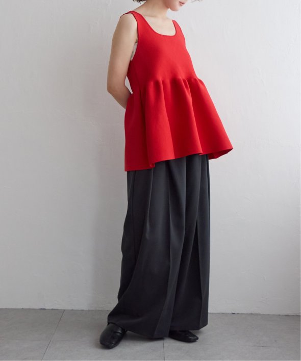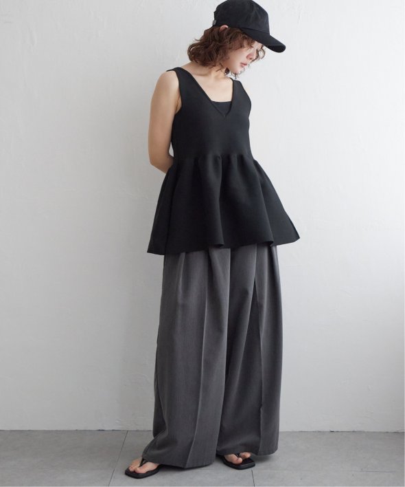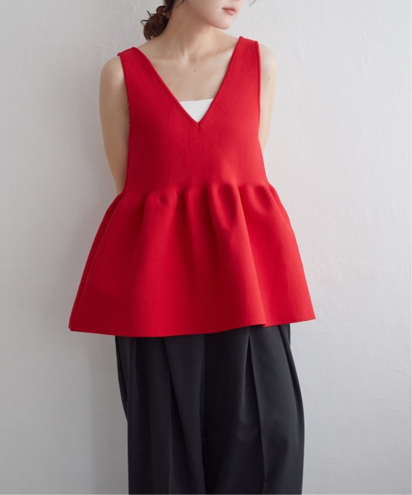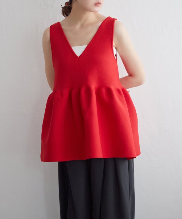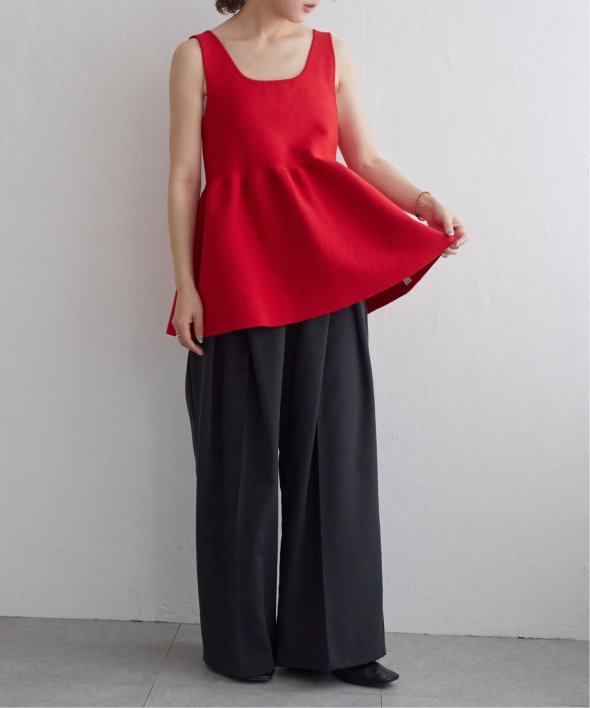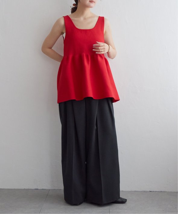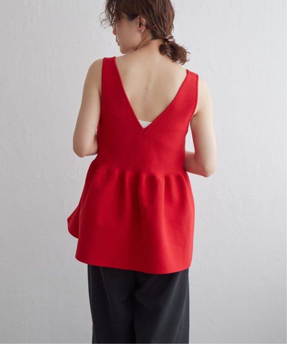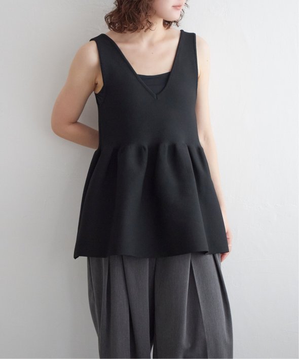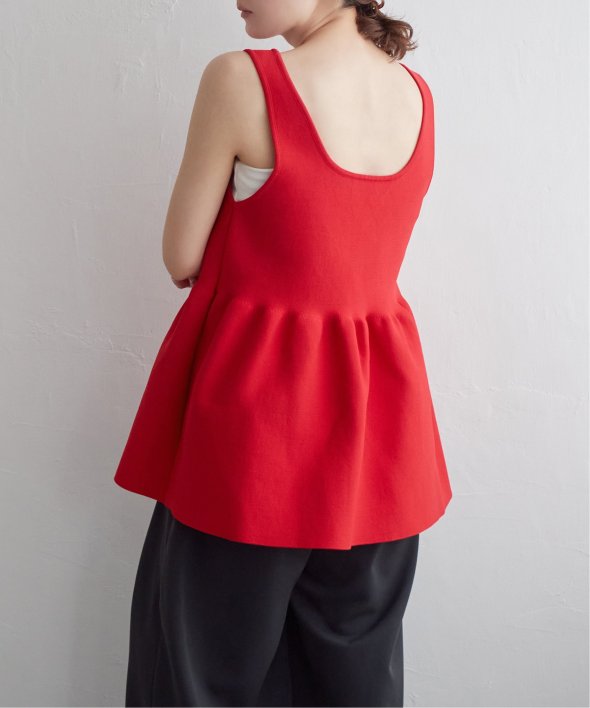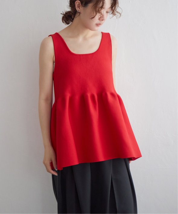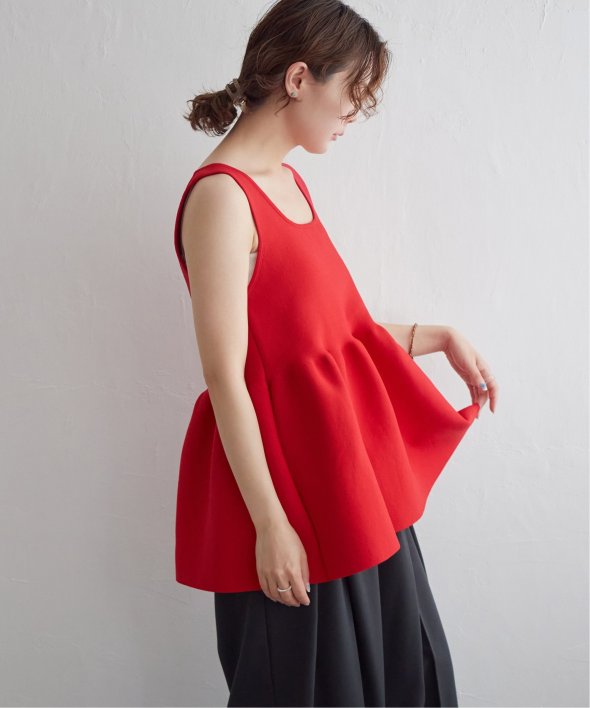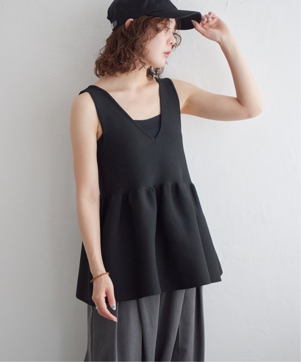 その日の気分に合わせて前後を変えられる、頼れるペプラムタンクトップ。