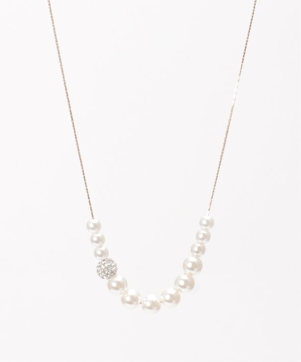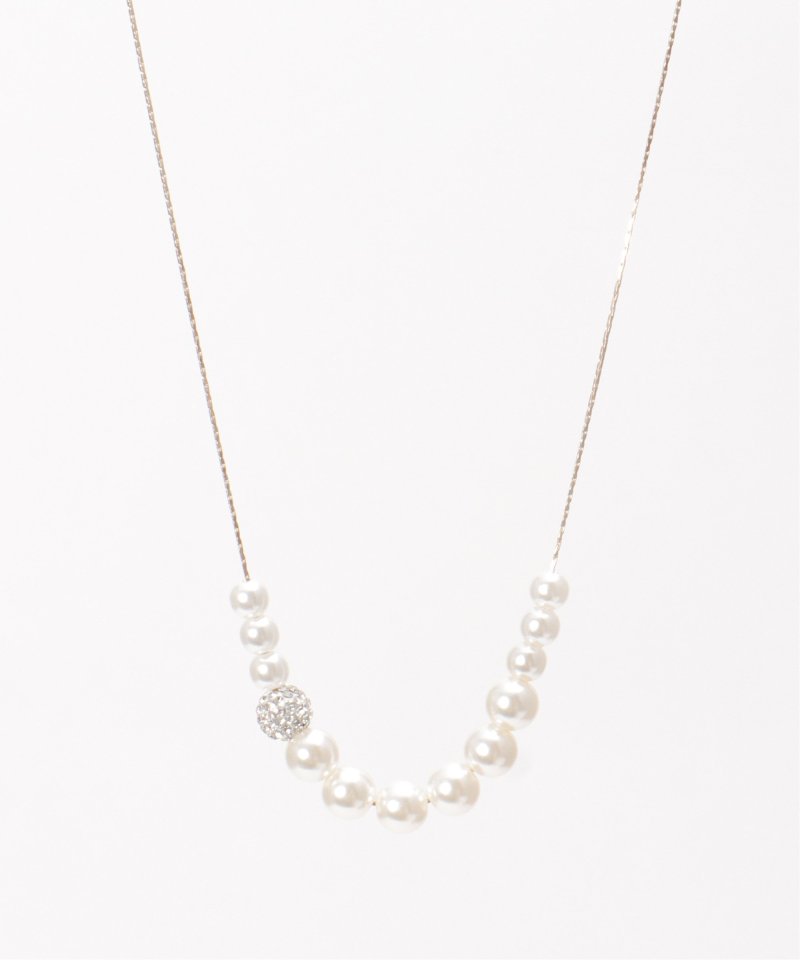 途中にキラリと光るビジューをあしらったスライドネックレス。