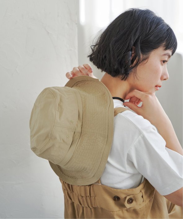 アウトドアな雰囲気ただようサファリハット。タウンユースはもちろん、旅行やキャンプなどイベントシーンにもしっかり活躍してくれます。【素材】丈夫なナイロン素材。【デザイン】アウトドアな雰囲気が、タウンユースはもちろん旅行やキャンプなどイベントシーンにもしっかり活躍!【ポイント】ベンチレーション(空気口)が付いているので蒸れにくく涼しいです。軽い素材で折りたため、持ち運びにも最適!