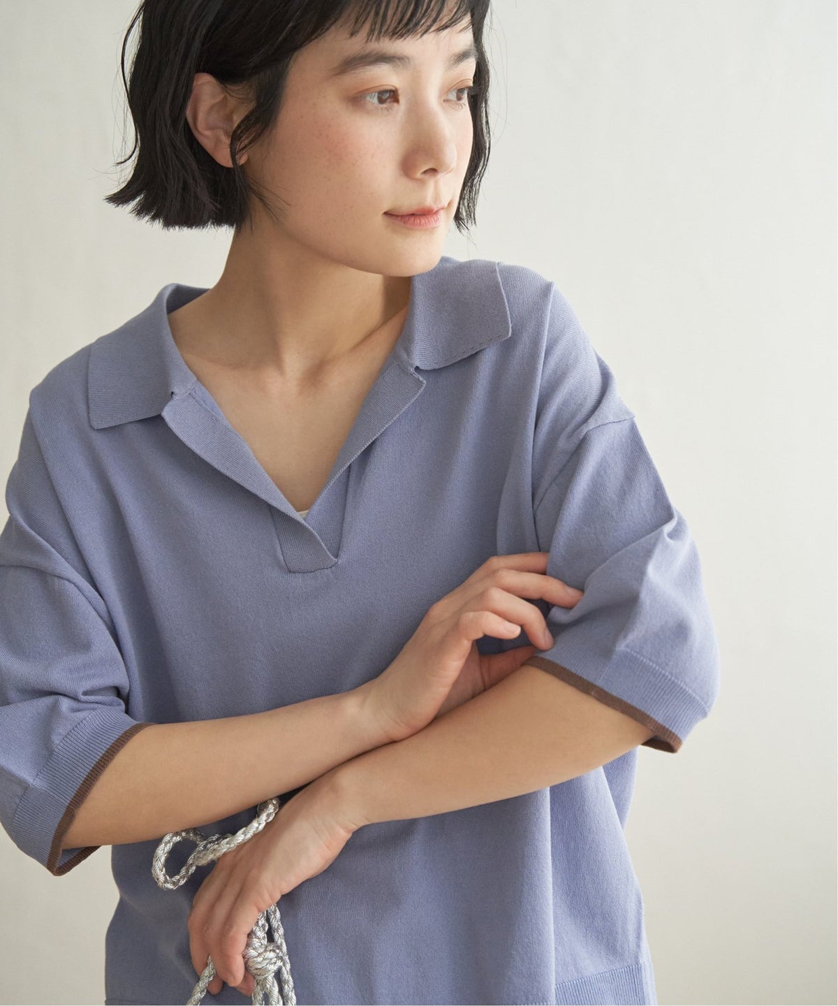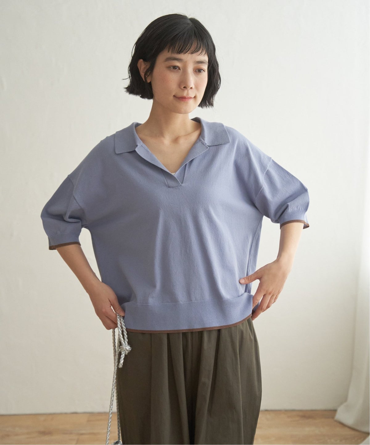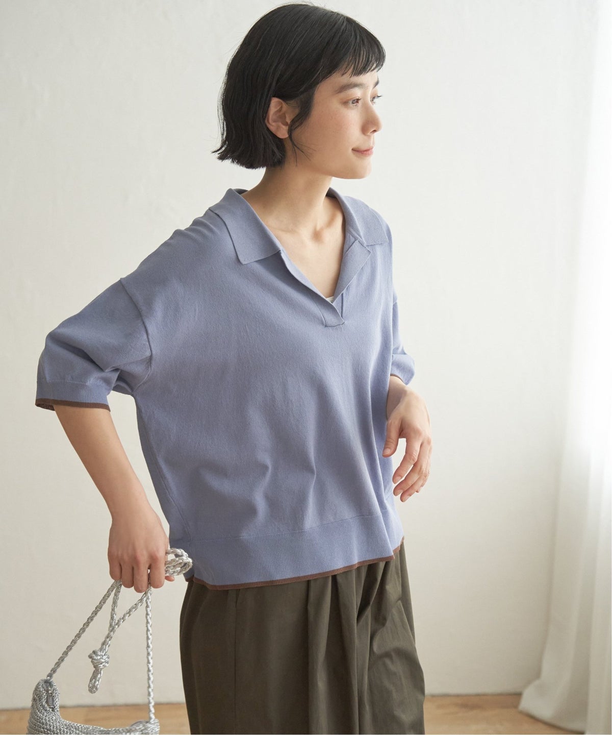 配色ラインが今っぽく映えるポロ襟ニット ポロ襟スキッパーニット