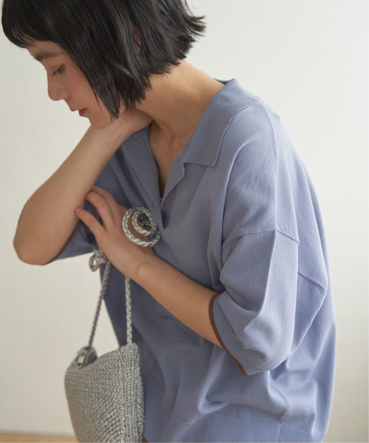 甘さと大人っぽさを両立する、春夏の主役ニット 鍵編みシャツ襟カーディガン