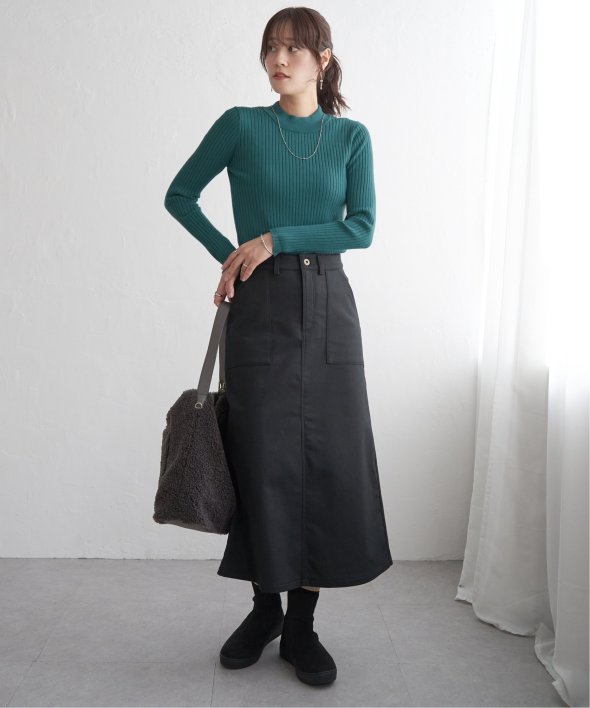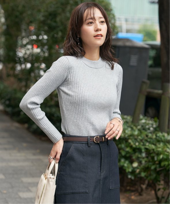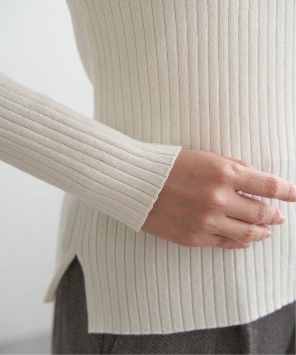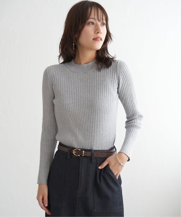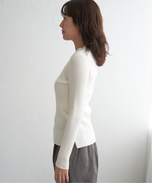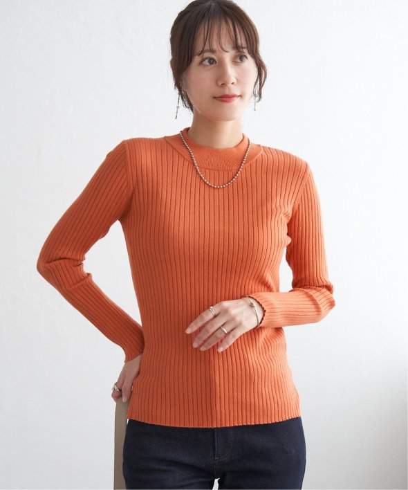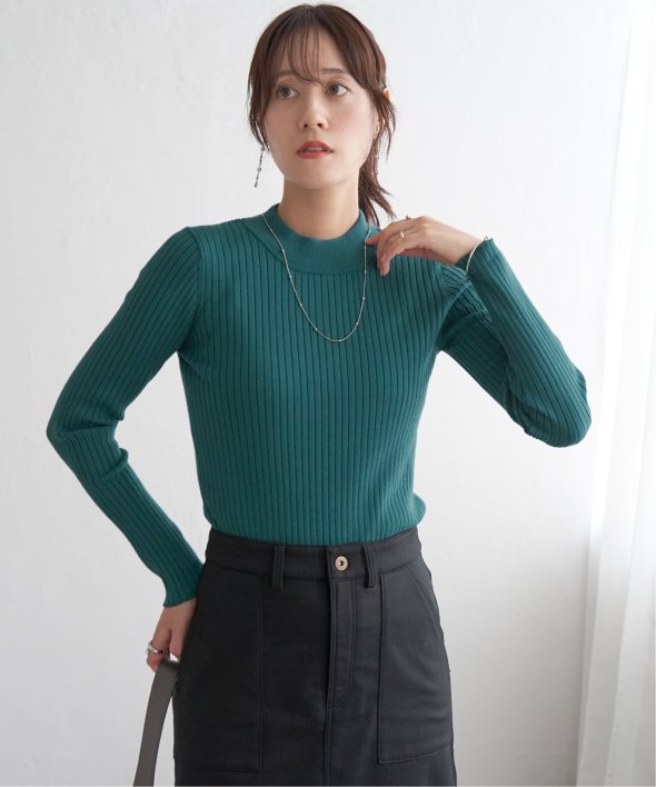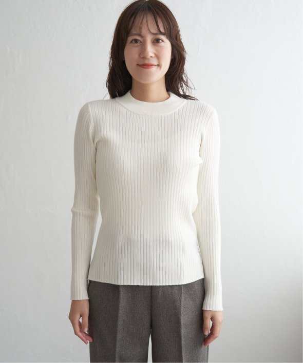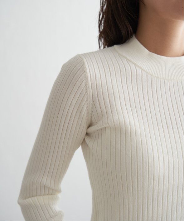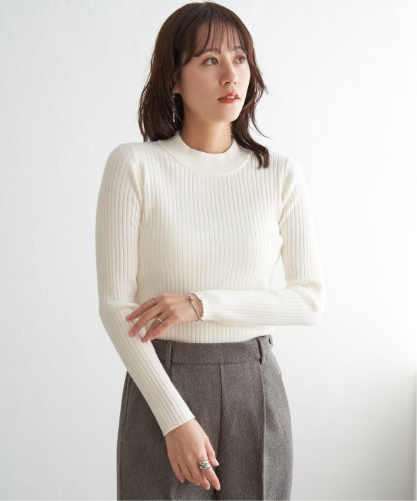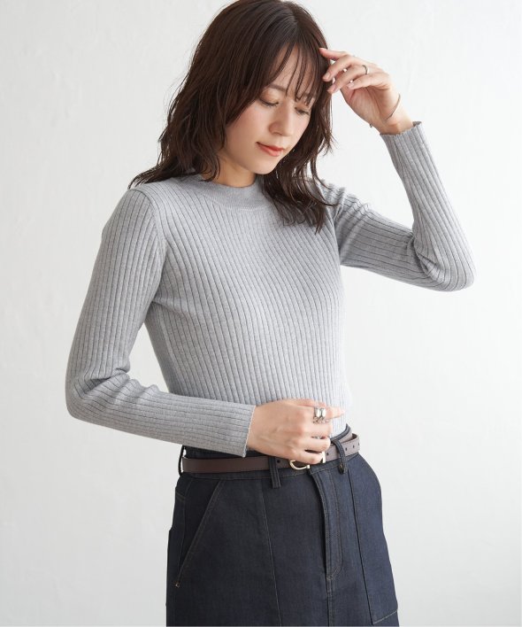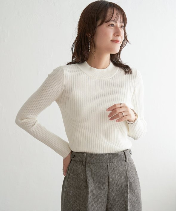首元をあたたかく包むモックネック衿、インナーに適したコンパクトなサイズ感のリブニットです。