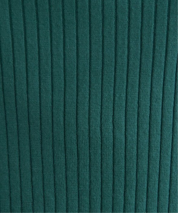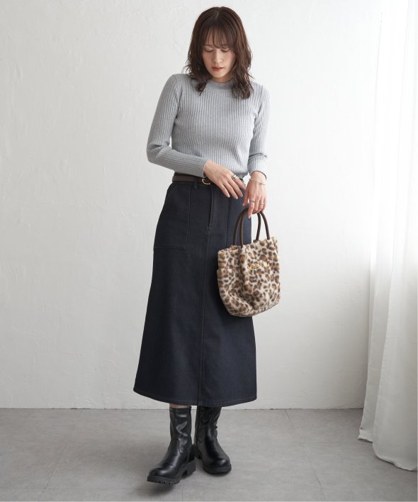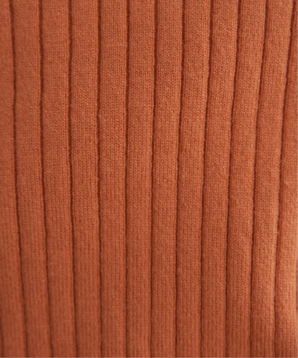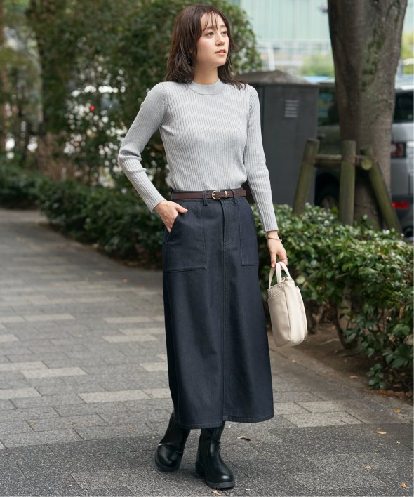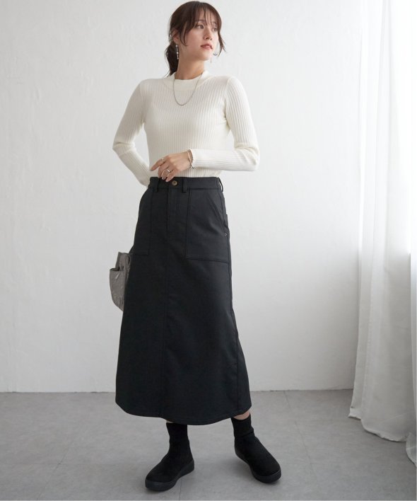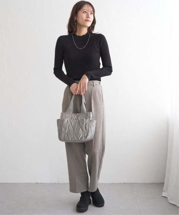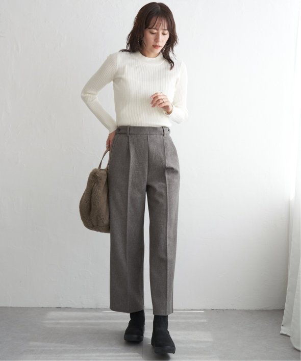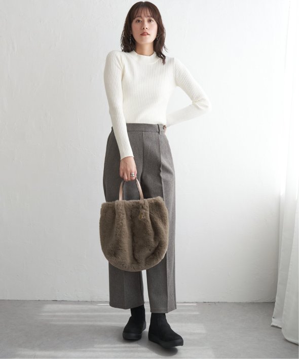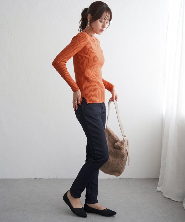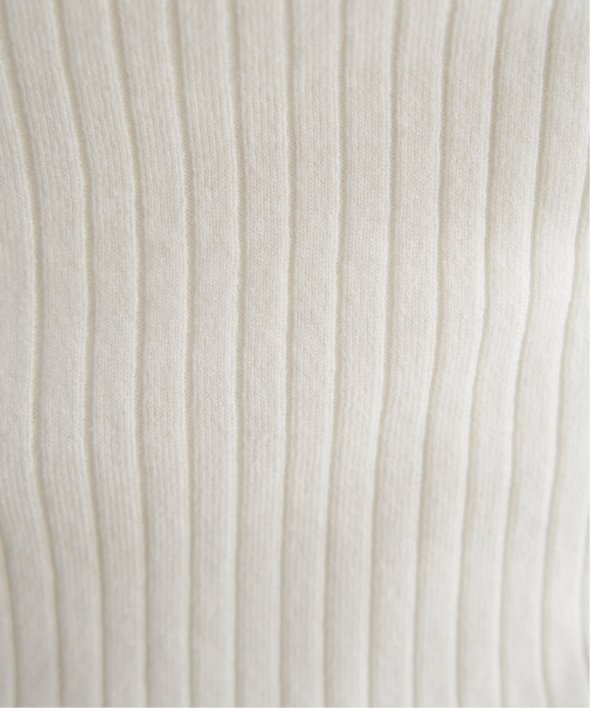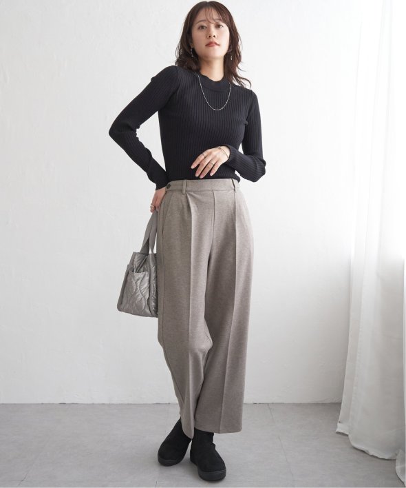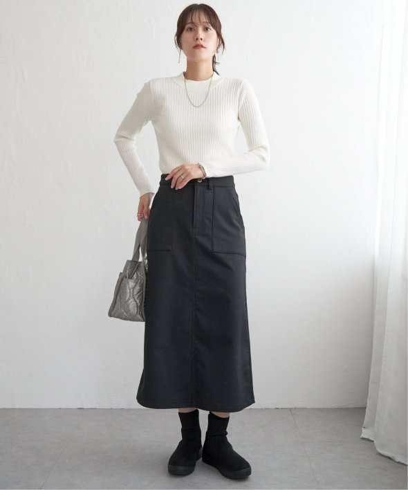 首元をあたたかく包むモックネック衿、インナーに適したコンパクトなサイズ感のリブニットです。