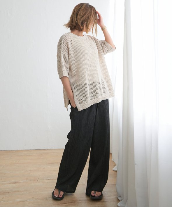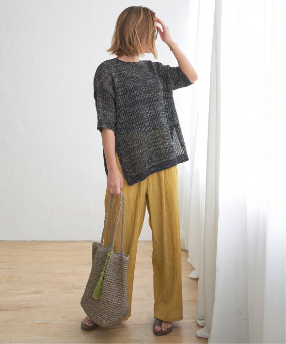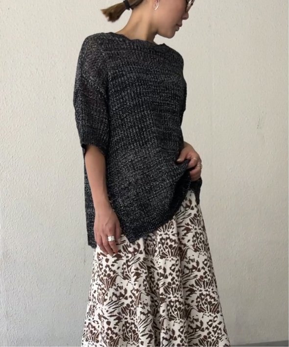 レイヤードを楽しめるメッシュニットは、今年らしくトレンドのラメ糸入りでより華やかなアイテムにしました。