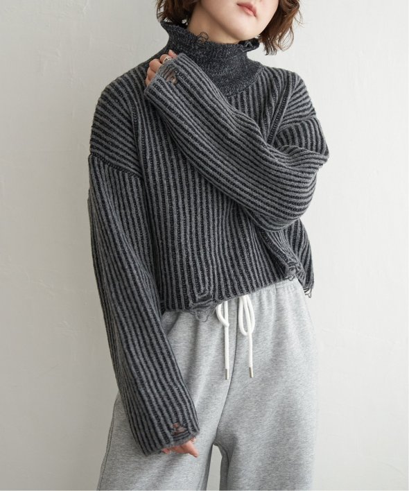 ネックとの配色デザインがポイントのタートルプルオーバー。