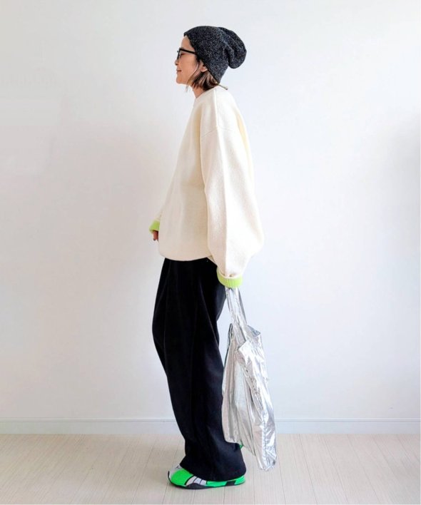 袖をまくらなければワンカラーのニットとして着られるため、シーンや気分で印象を変えられます。