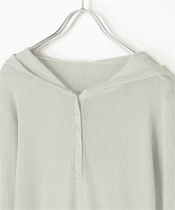 シアー感のある素材とヘンリーネックデザインが今っぽい表情を演出するランダムリブヘンリーフーディ。