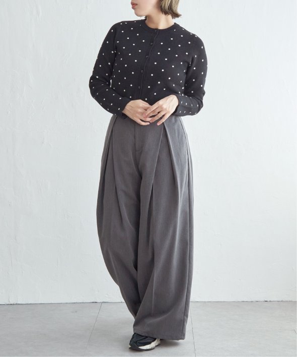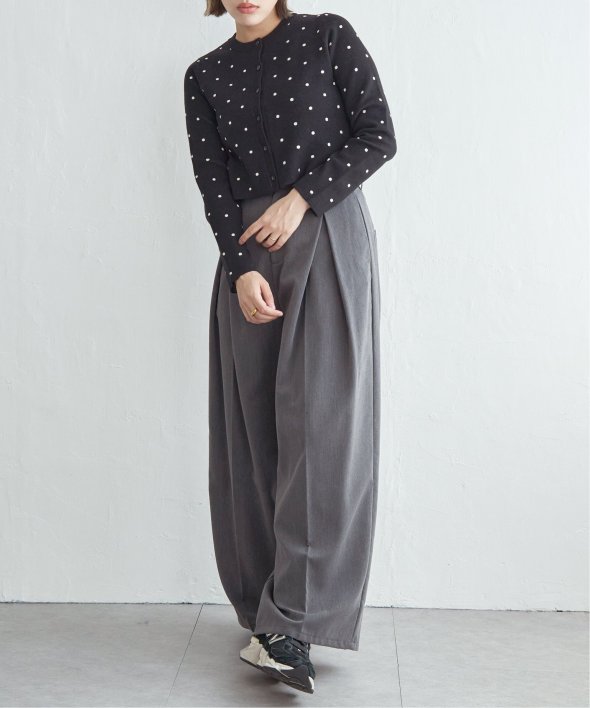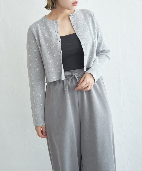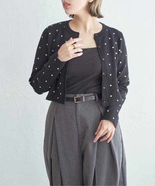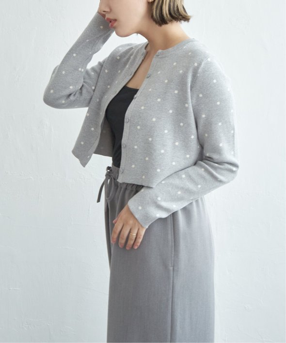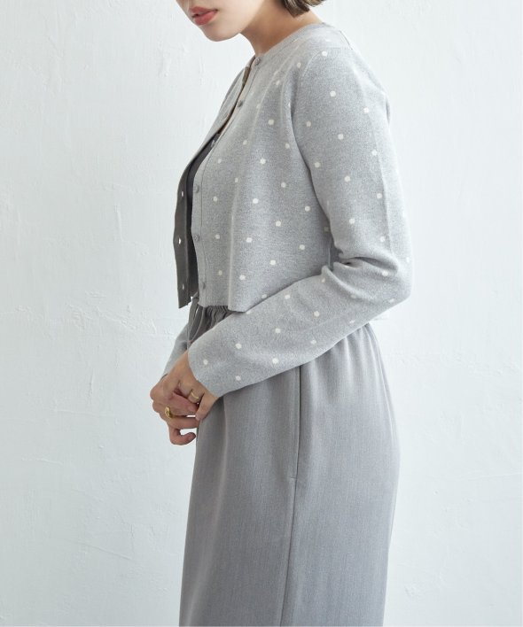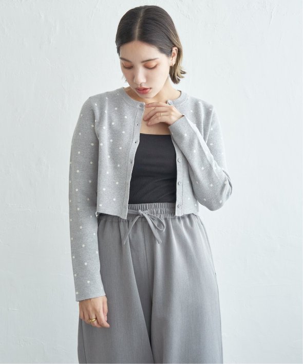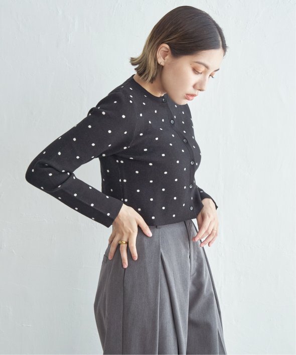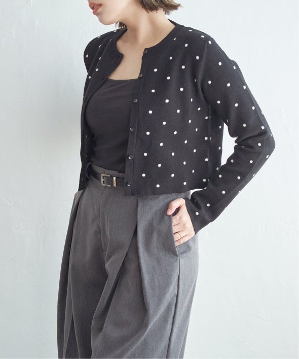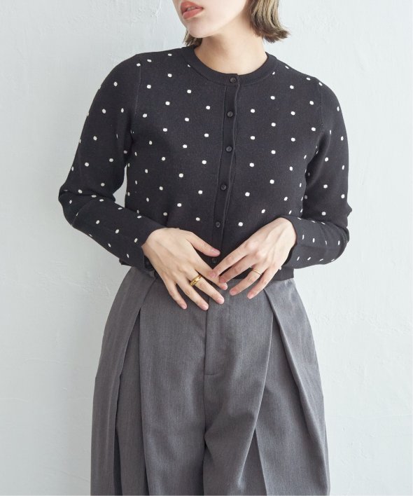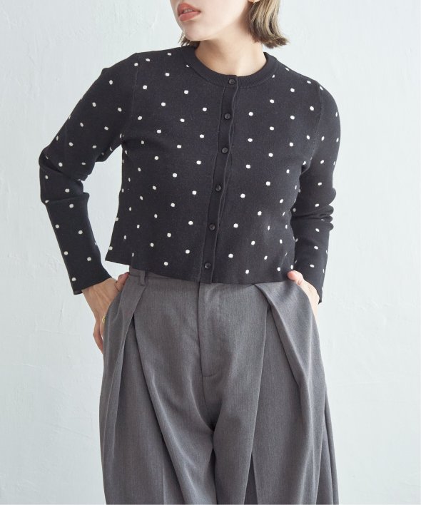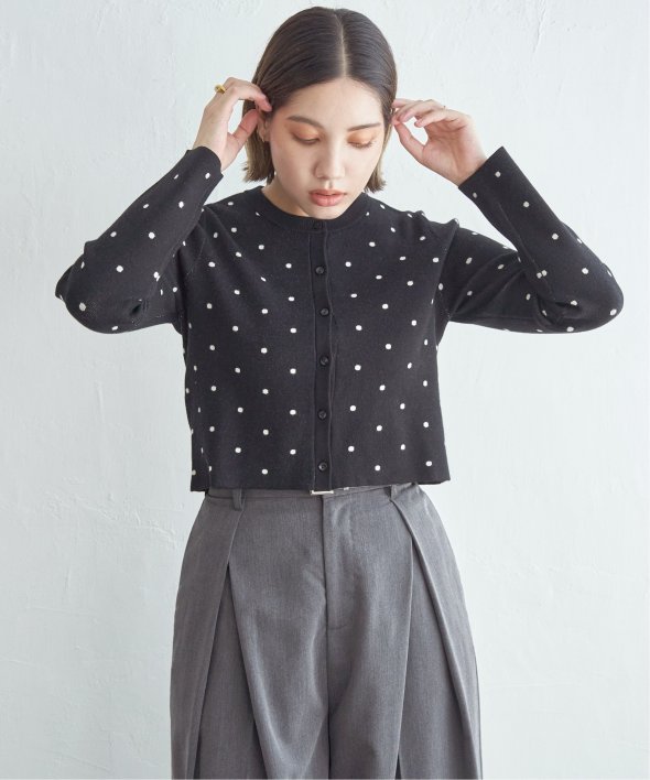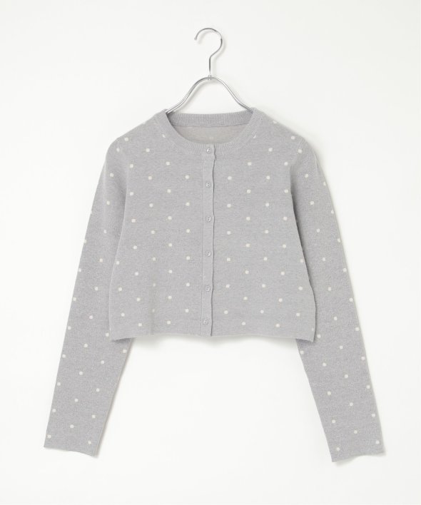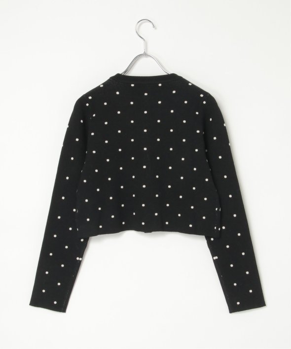 レトロかわいいドット柄が魅力のニットカーディガン。