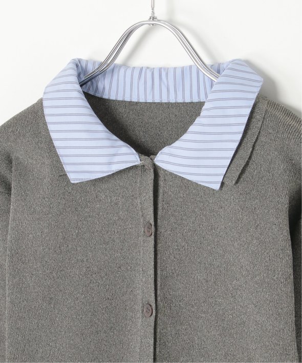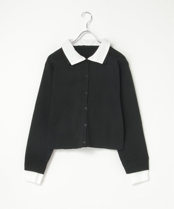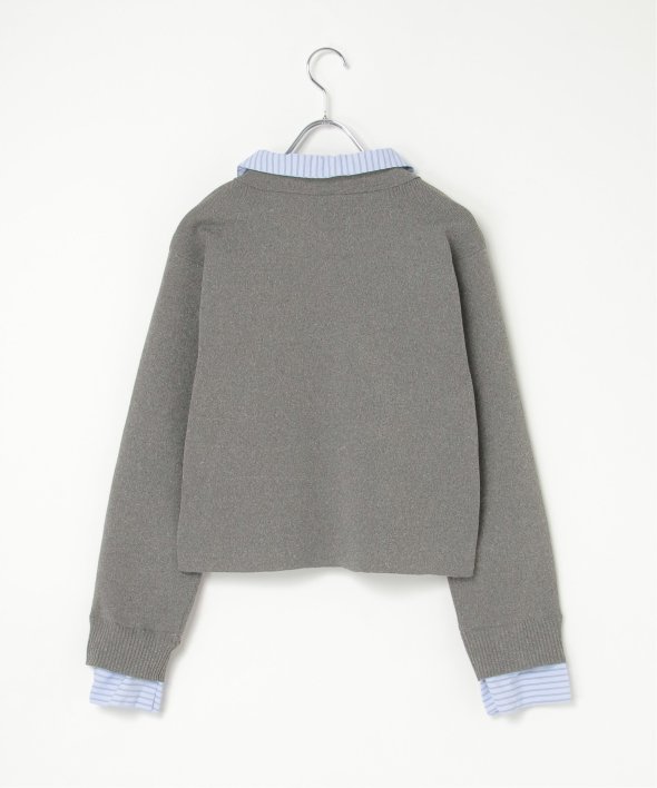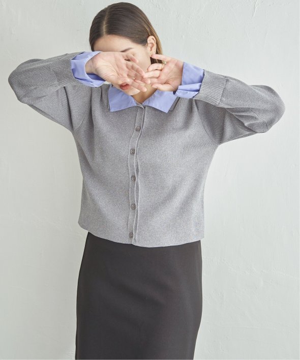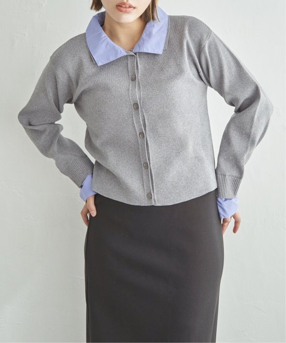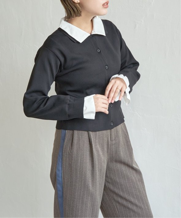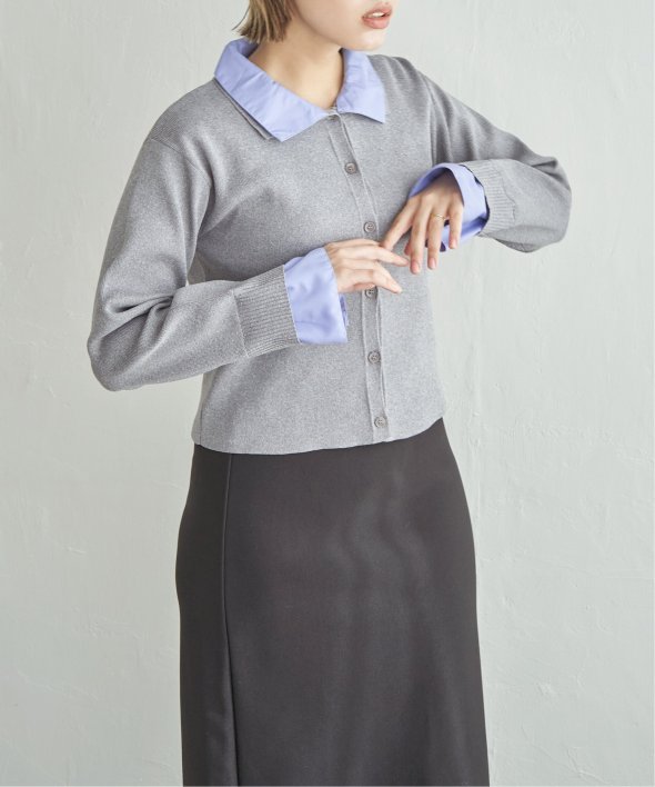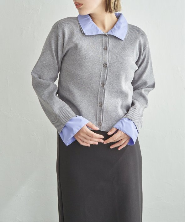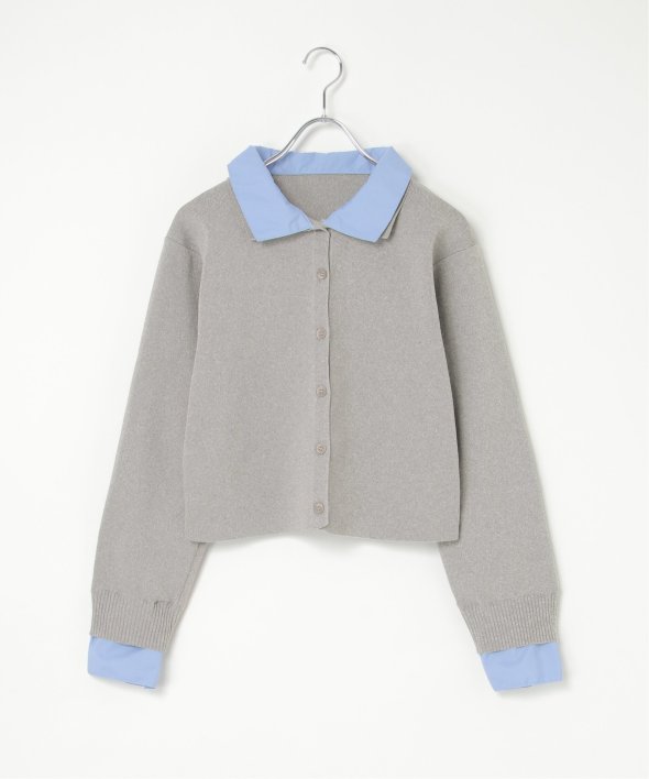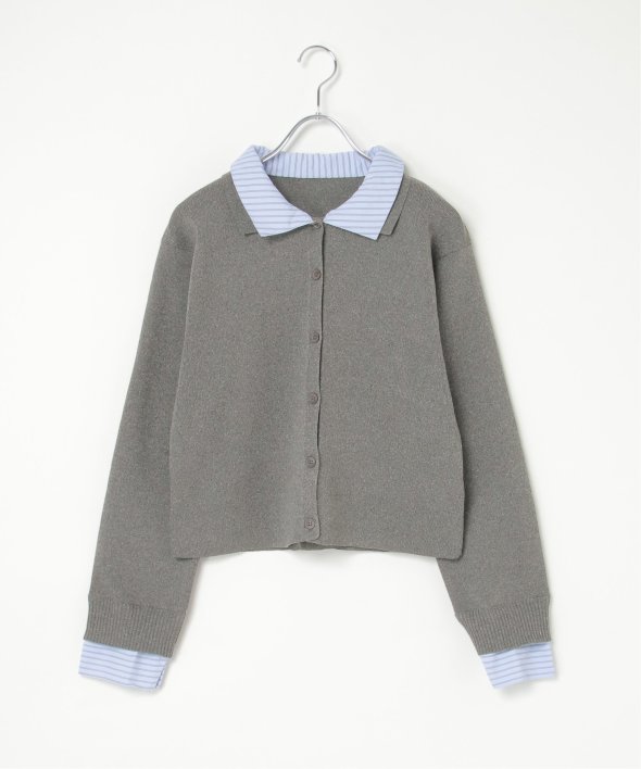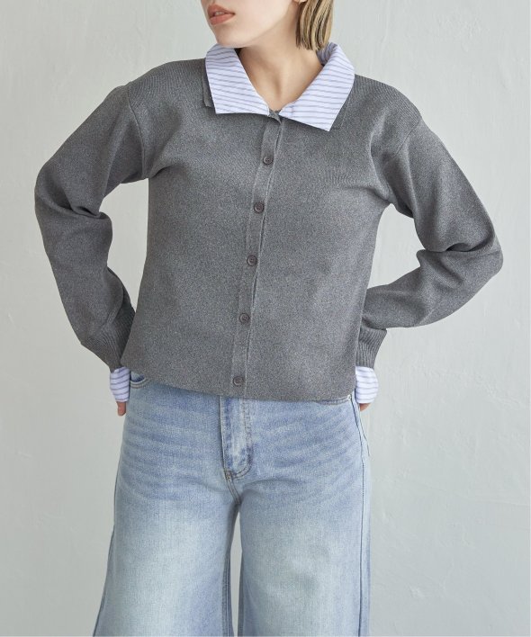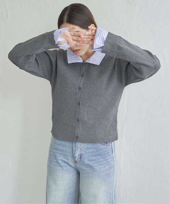 シャツを重ねたようなデザインが魅力のレイヤード風カーディガン。
