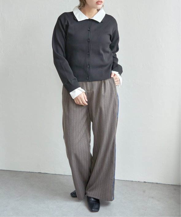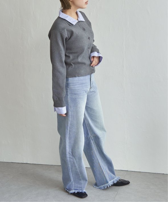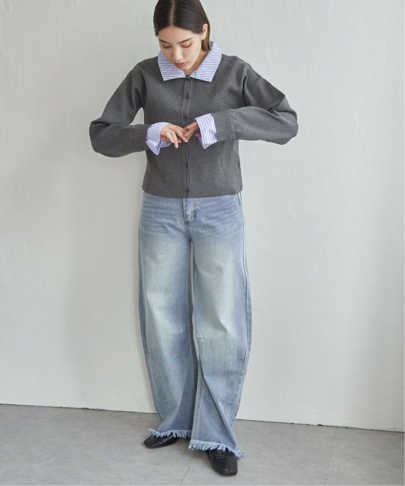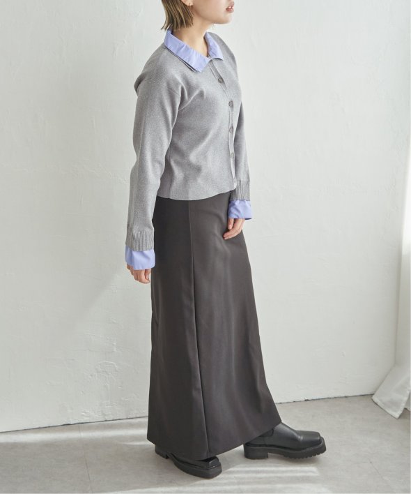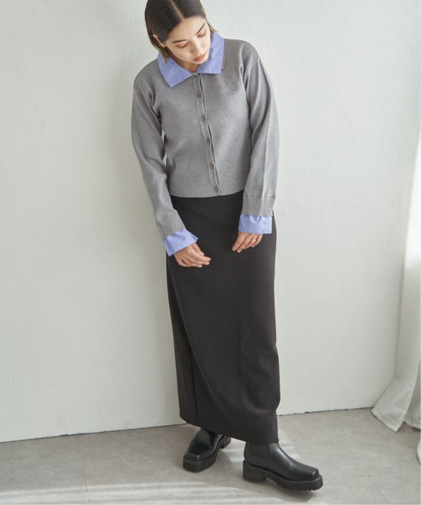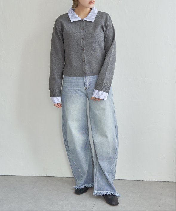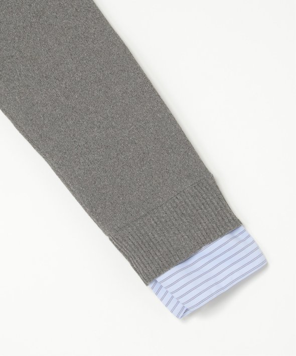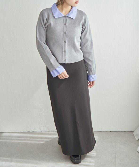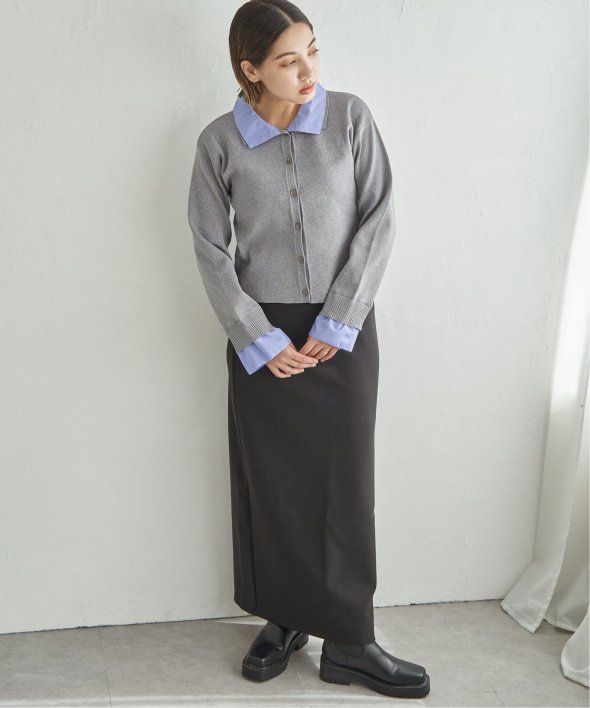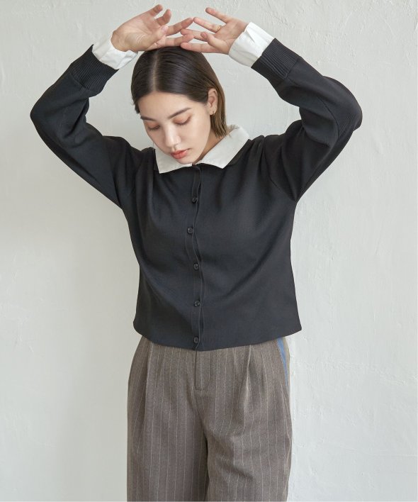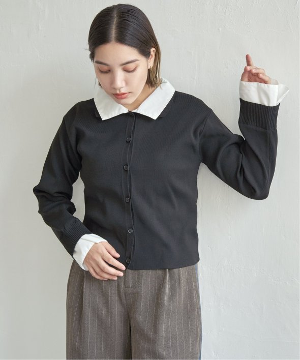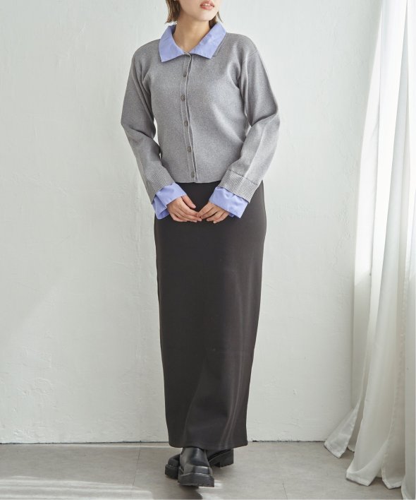 シャツを重ねたようなデザインが魅力のレイヤード風カーディガン。