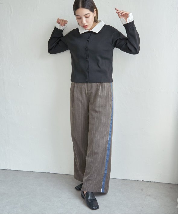 ワイドパンツやタックパンツにスニーカーを合わせて今っぽいカジュアルスタイル。