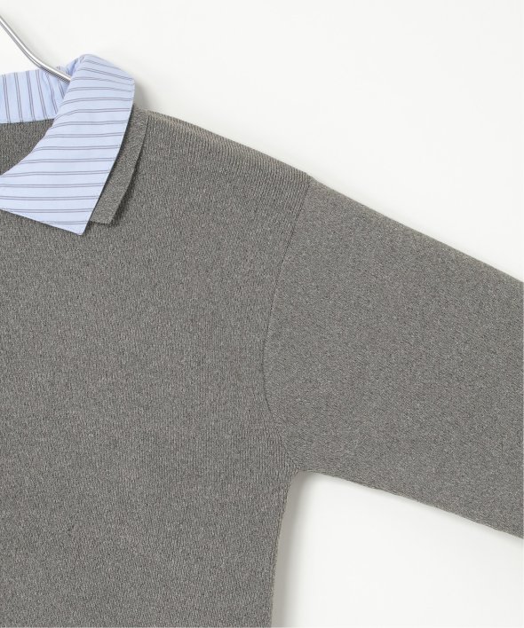 襟と前立て部分にシャツ生地を取り入れることで、一枚で重ね着風のコーディネートを楽しめます。