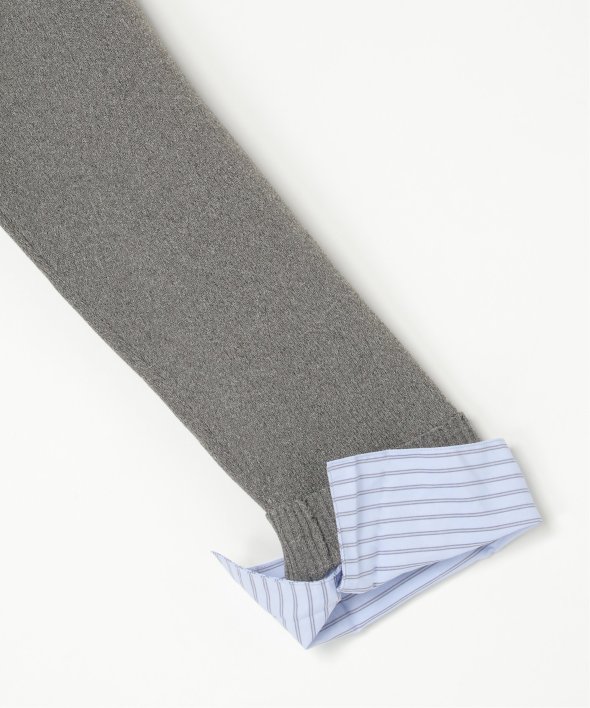 襟と前立て部分にはシャツ生地を使用し、重ね着風のデザインを表現。