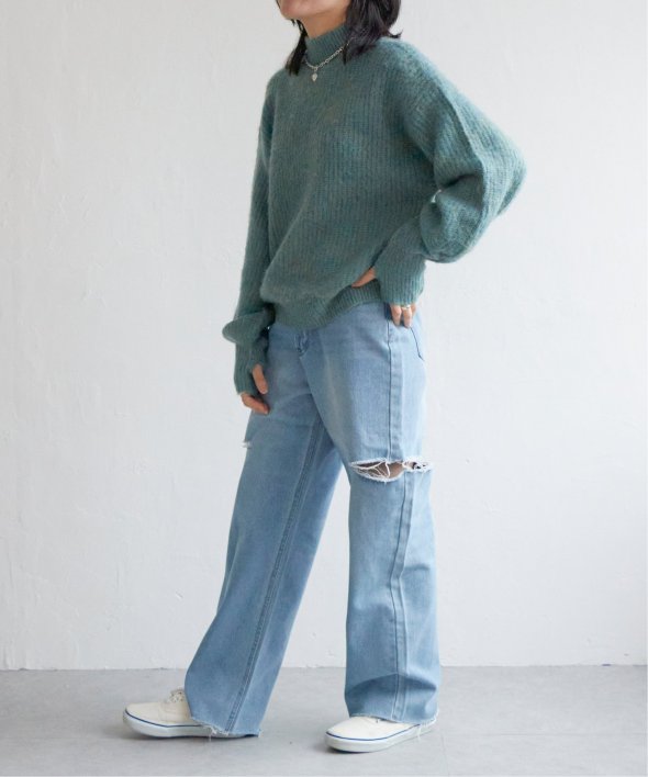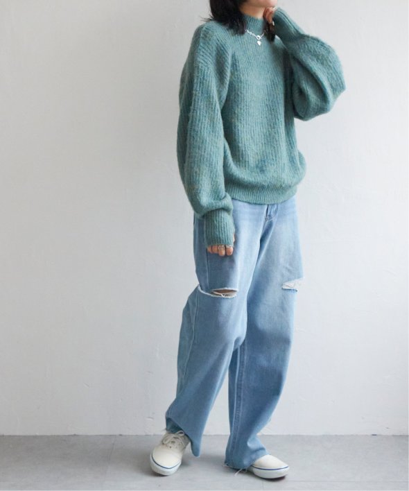 ゆったりと着られるシルエットで、首元はややハイネック仕様。