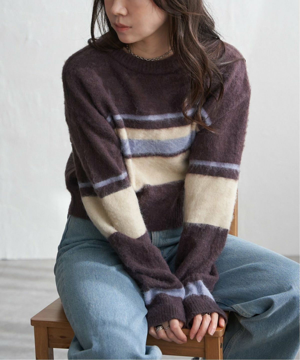 冬コーデにレトロな可愛さを添えるニット アルパカタッチラガーシャツ