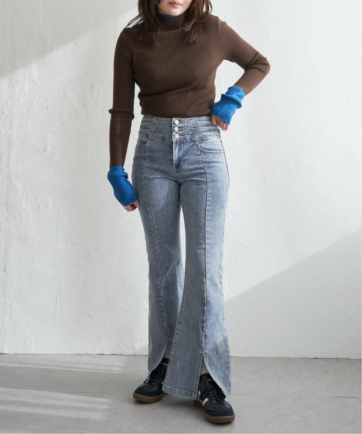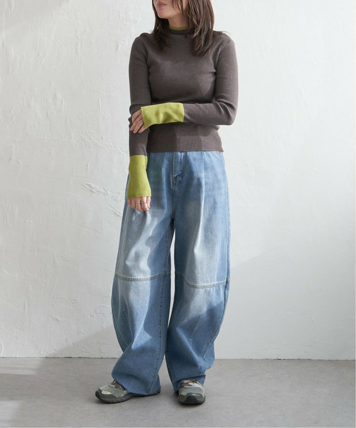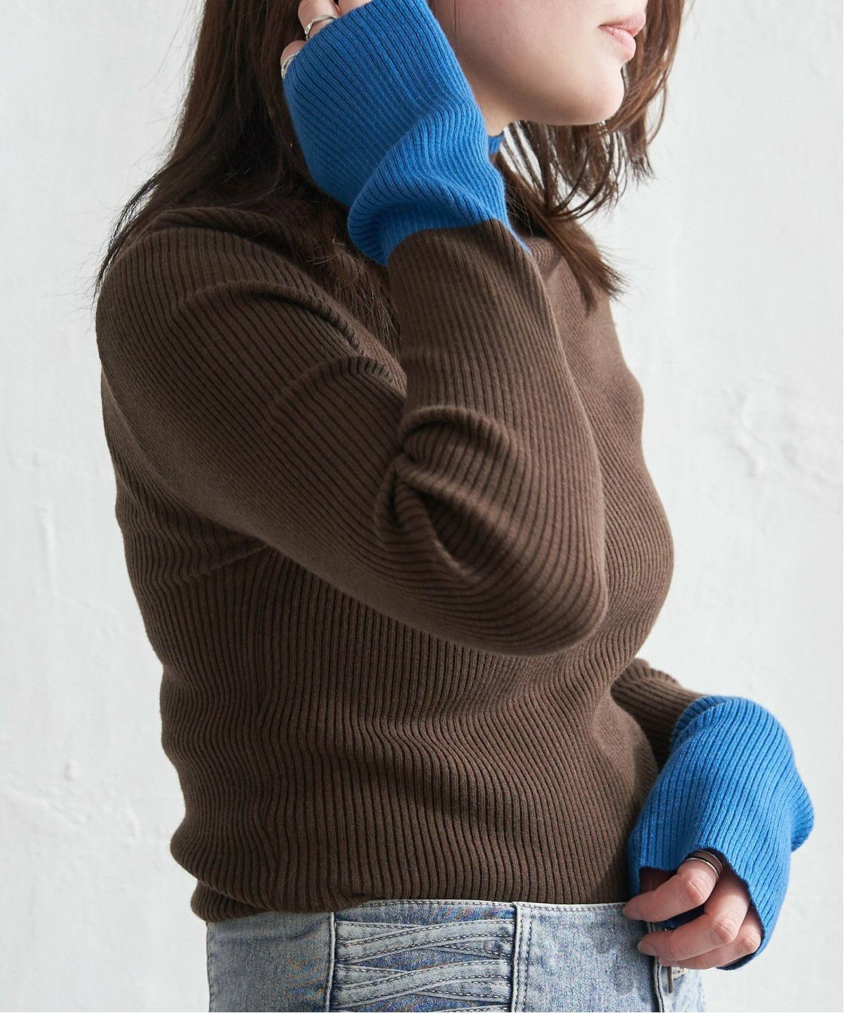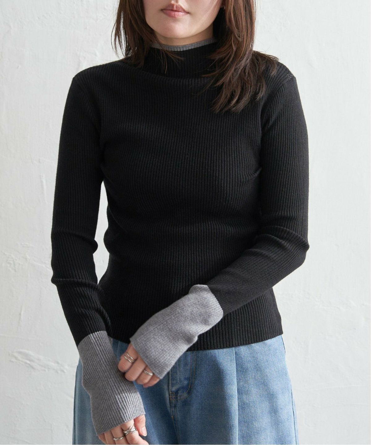 配色とディテールで魅せるハイネックニット 配色クールクールハイネックプルオーバー