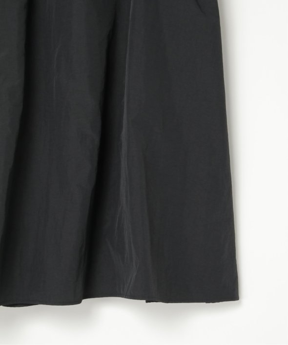 ナイロン×ドロスト仕様のスポーティーなディテールと、フレアシルエットのフェミニンな雰囲気を上手にミックスしたデザイン。