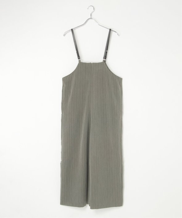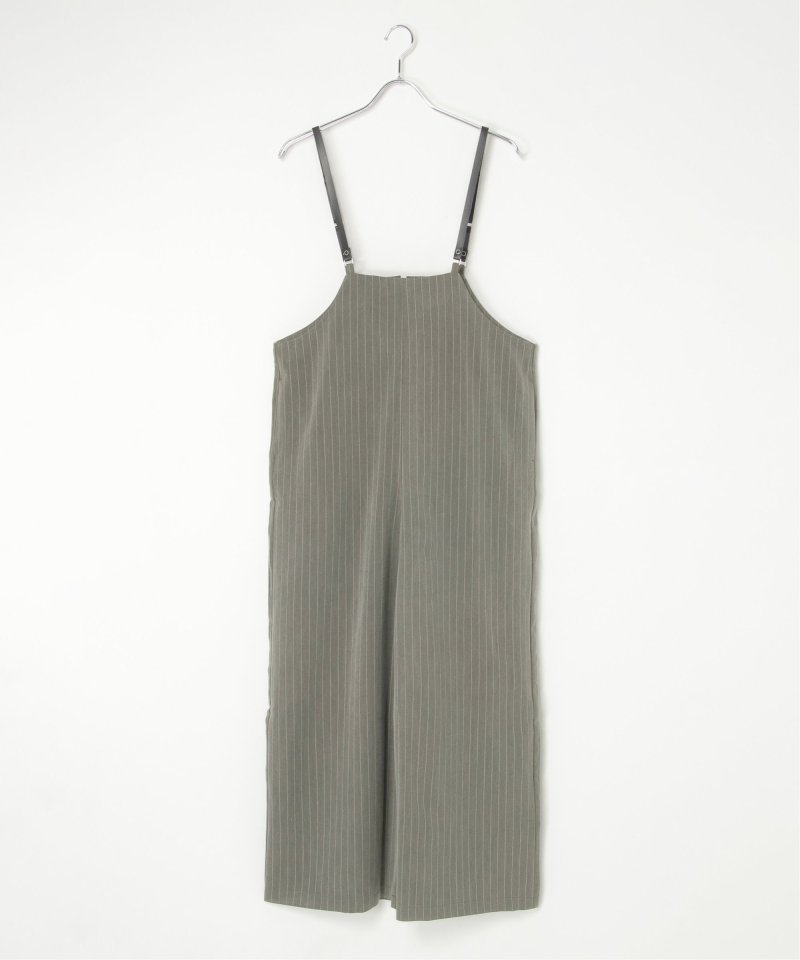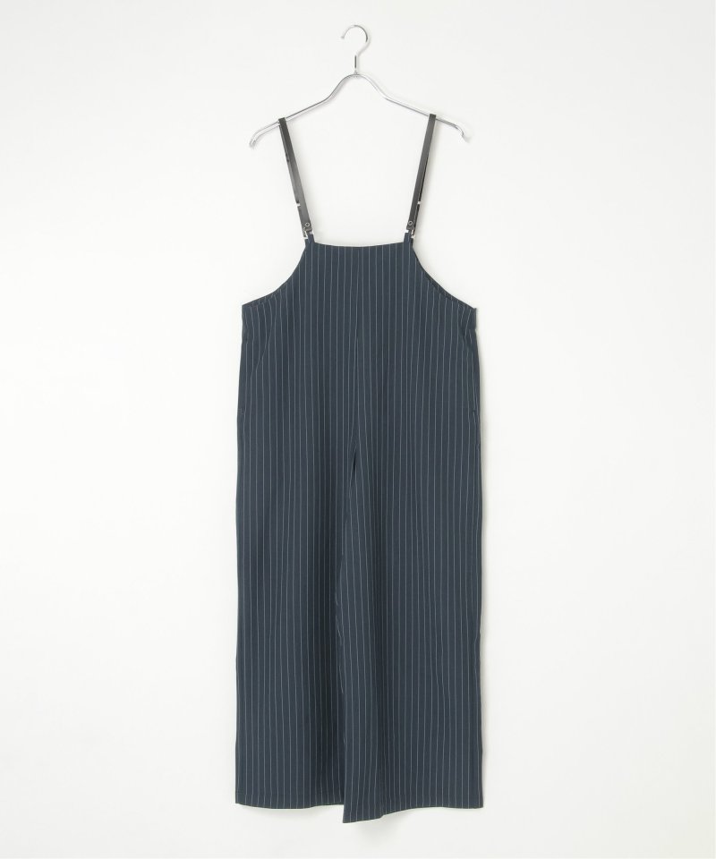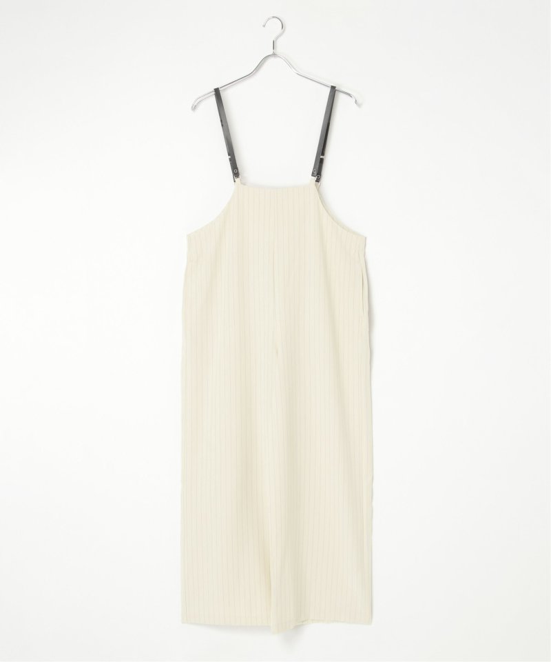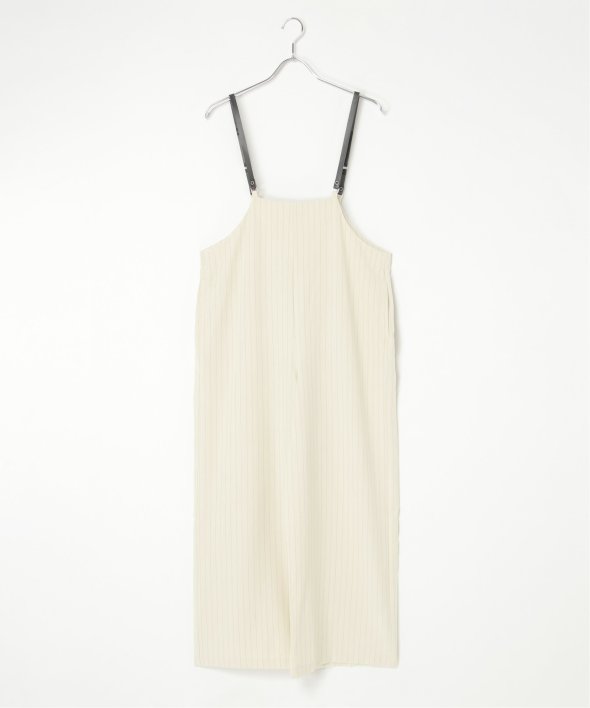 マニッシュなストライプ柄を、華奢なストラップデザインで女性らしく落とし込んだサロペット。