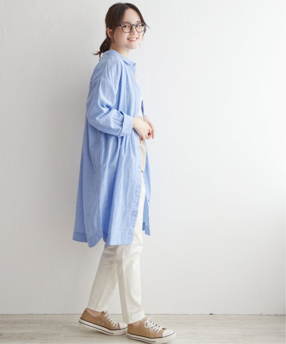 シャツテールからややストレートなボックス見えにすることで、羽織った時によりサマになるシルエットになりました。