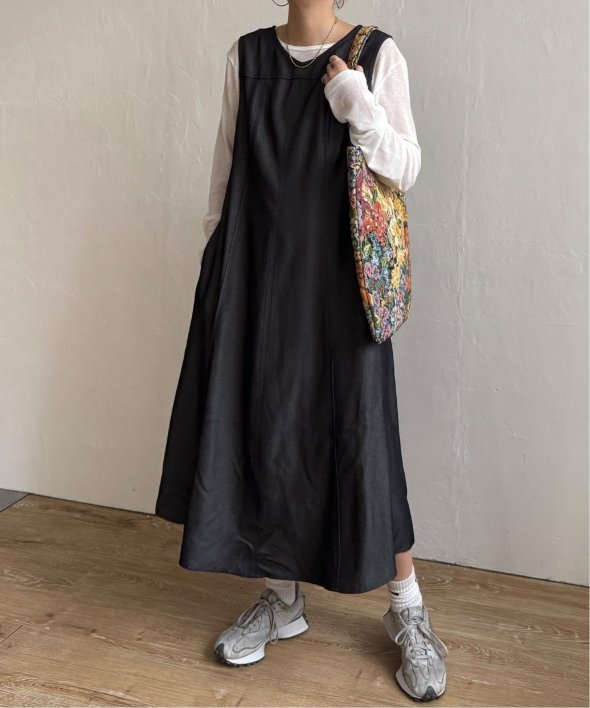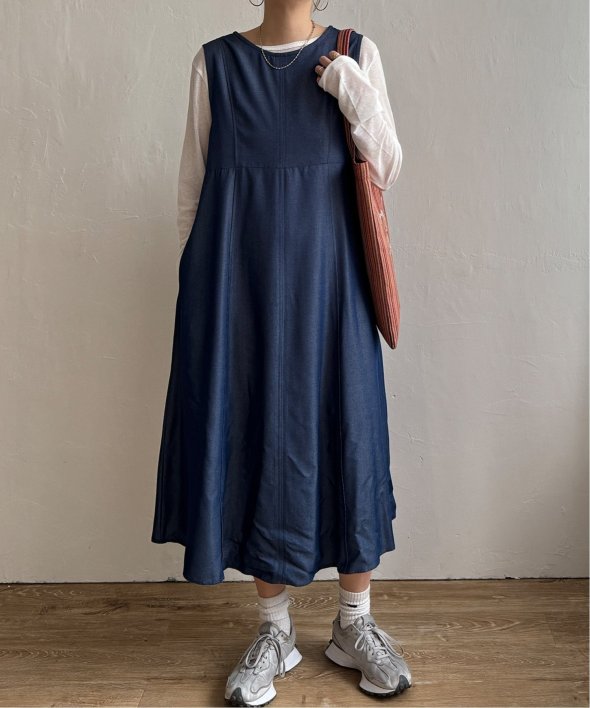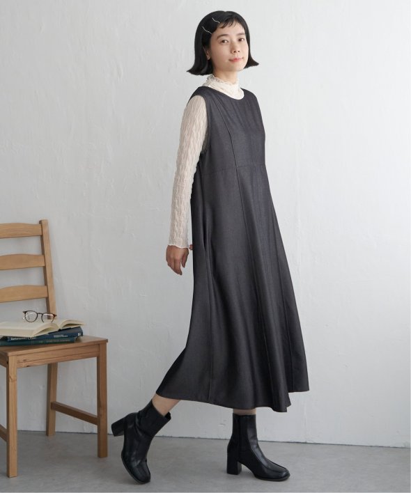 インナー次第で着回し自由自在なフレアワンピース。